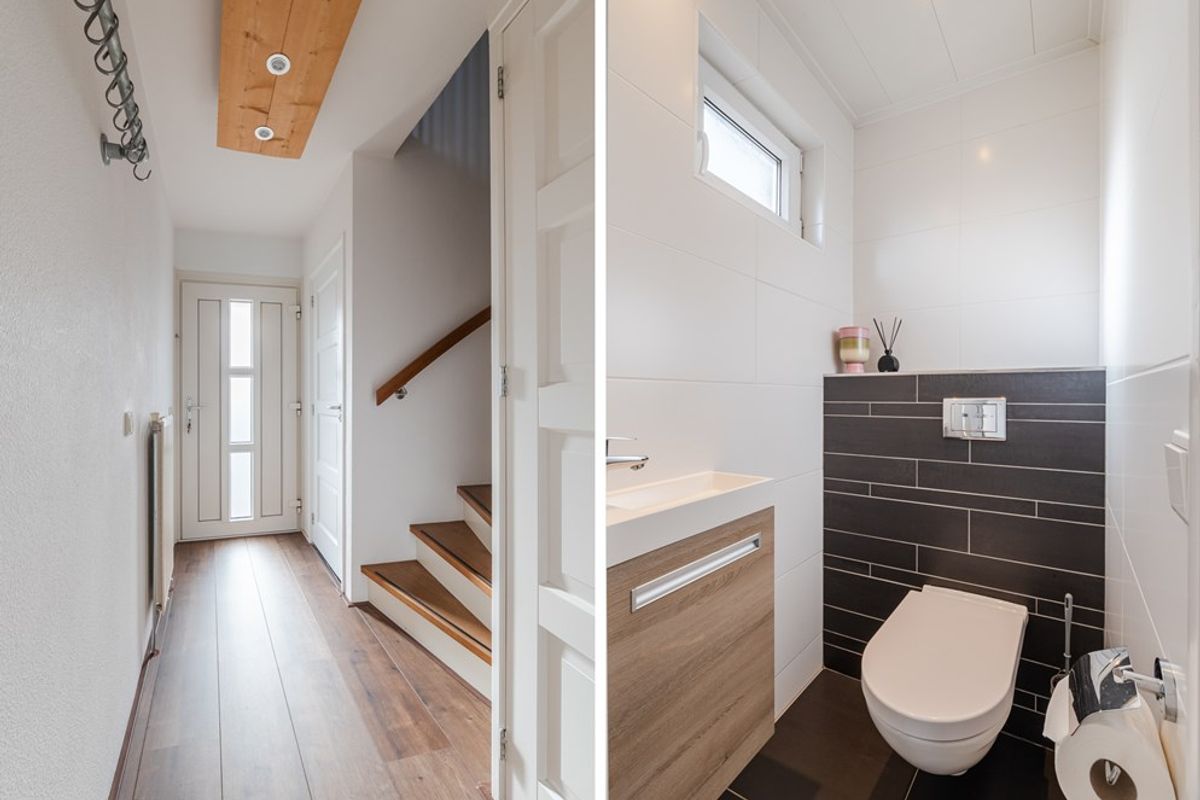 - Entree, hal, toilet met fontein, trapkast en kelder.
