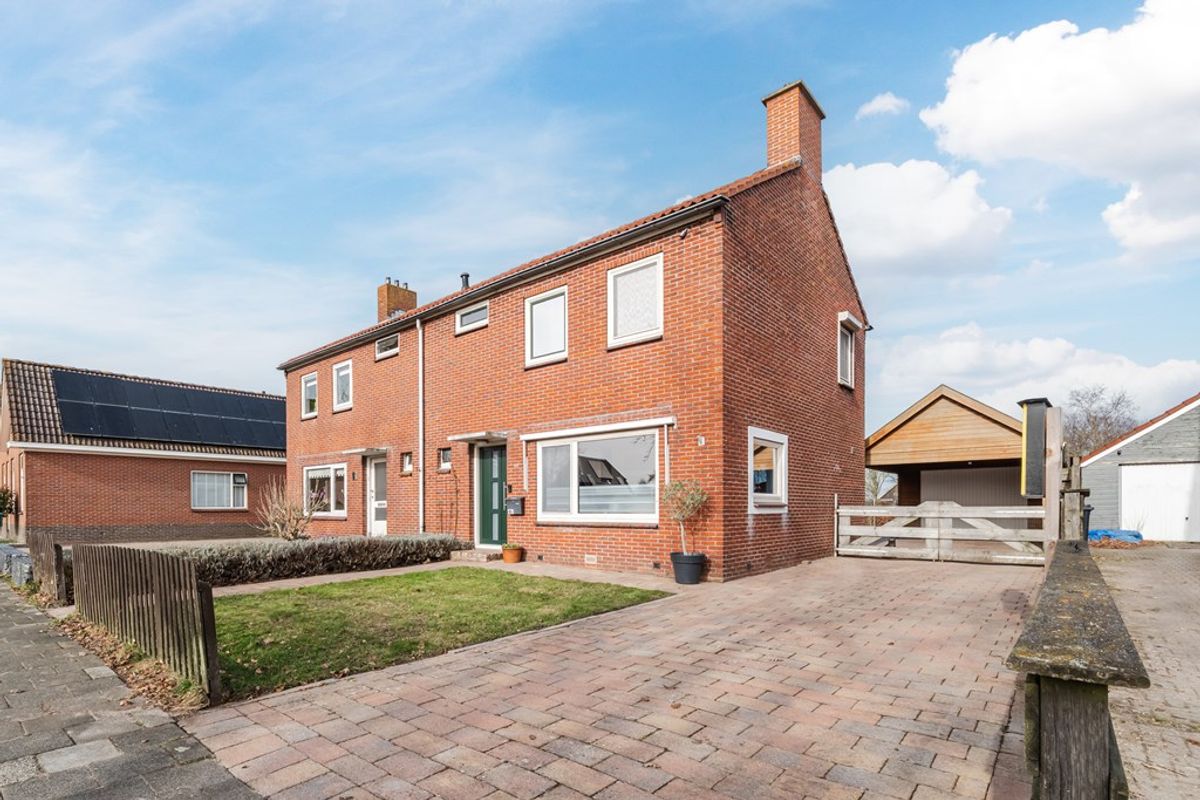 De diepe achtertuin biedt volop mogelijkheden om van het buitenleven te genieten. Achter op het perceel staat een houten garage met carport, ideaal voor het stallen van een auto, fietsen of extra opslag.