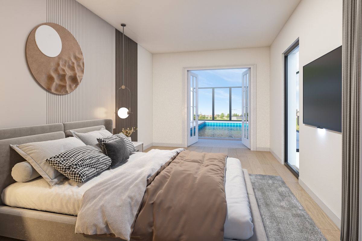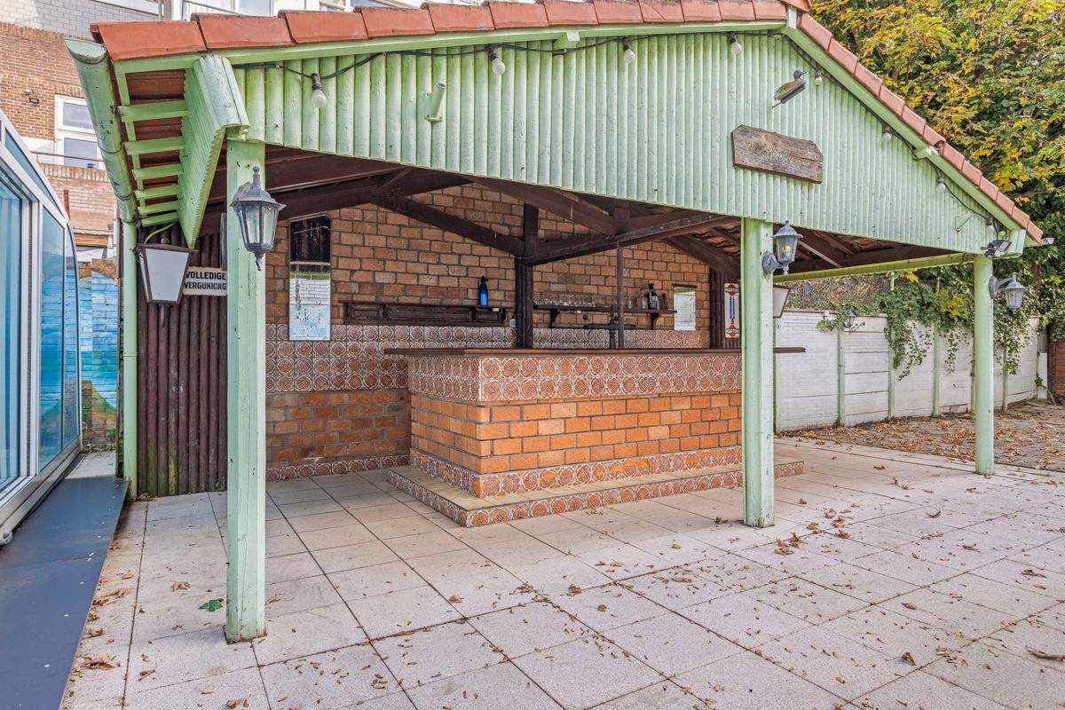 De tweede deur in de badkamer ontsluit de tweede slaapkamer. Eveneens ruim met twee openslaande deuren naar het zwembad, of we moeten eigen zeggen de poolhouse. Wat een luxe! Hebben we het dan gehad? Zeker niet, want via de slaapkamer komt u op het enorme binnenterrein. Nu nog betegeld maar hier kunt u natuurlijk nog een prachtige tuin aanleggen. En een overkapping met bar en een biertap staat er al. Met andere woorden, niets staat u het houden van een flink feest nog in de weg. Deze bijzondere woning is met kwalitatief hoogstaande materialen mooi afgewerkt en zeker een bezichtiging waard.