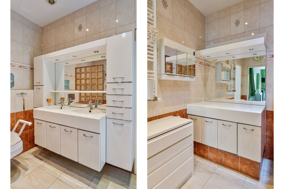 Terug naar de smaakvolle woonkamer, want via de tweede deur komt u in de enorme 2e badkamer met een heerlijk ruime inloopdouche. Ruim en comfortabel zijn in deze woning inderdaad de sleutelwoorden.