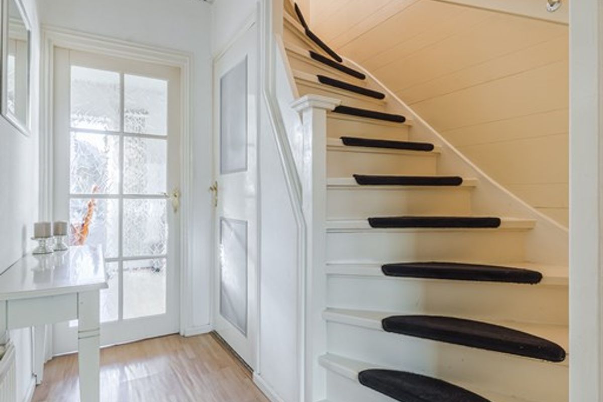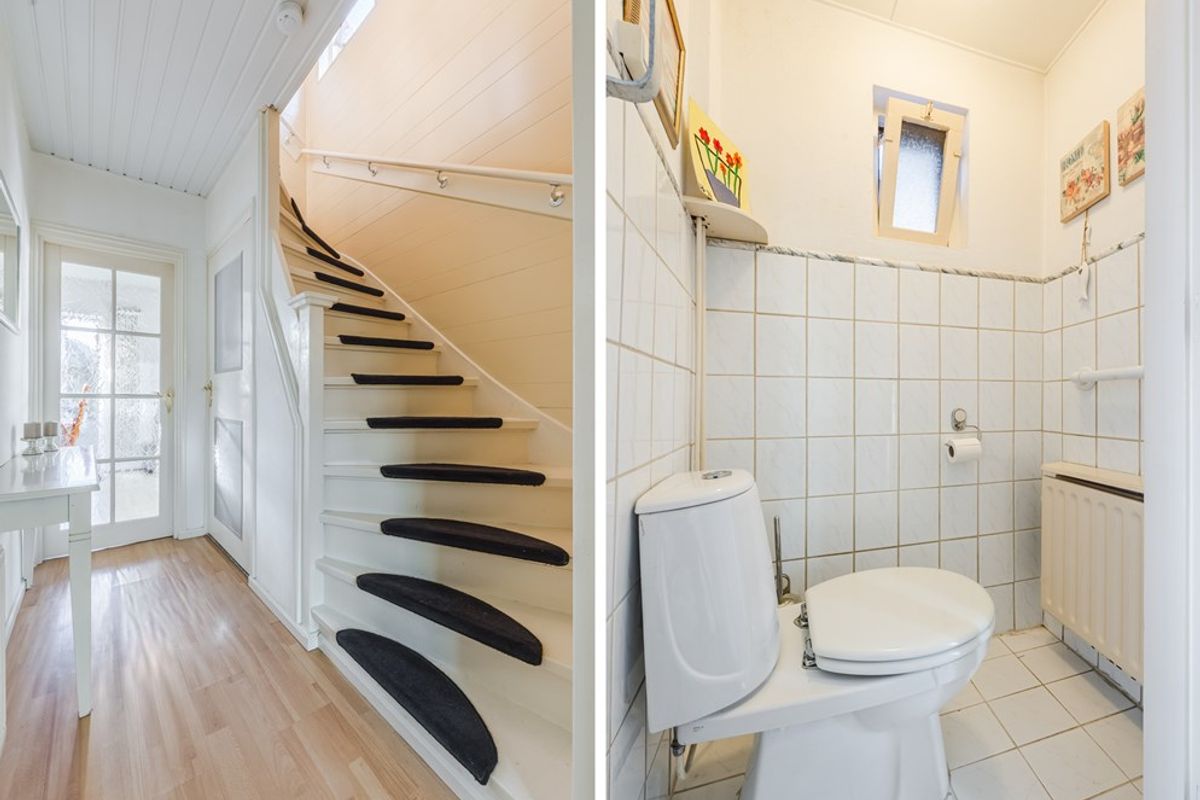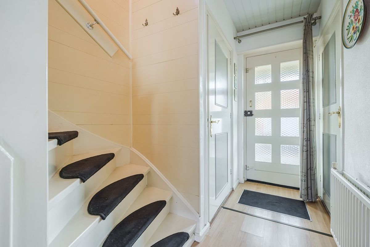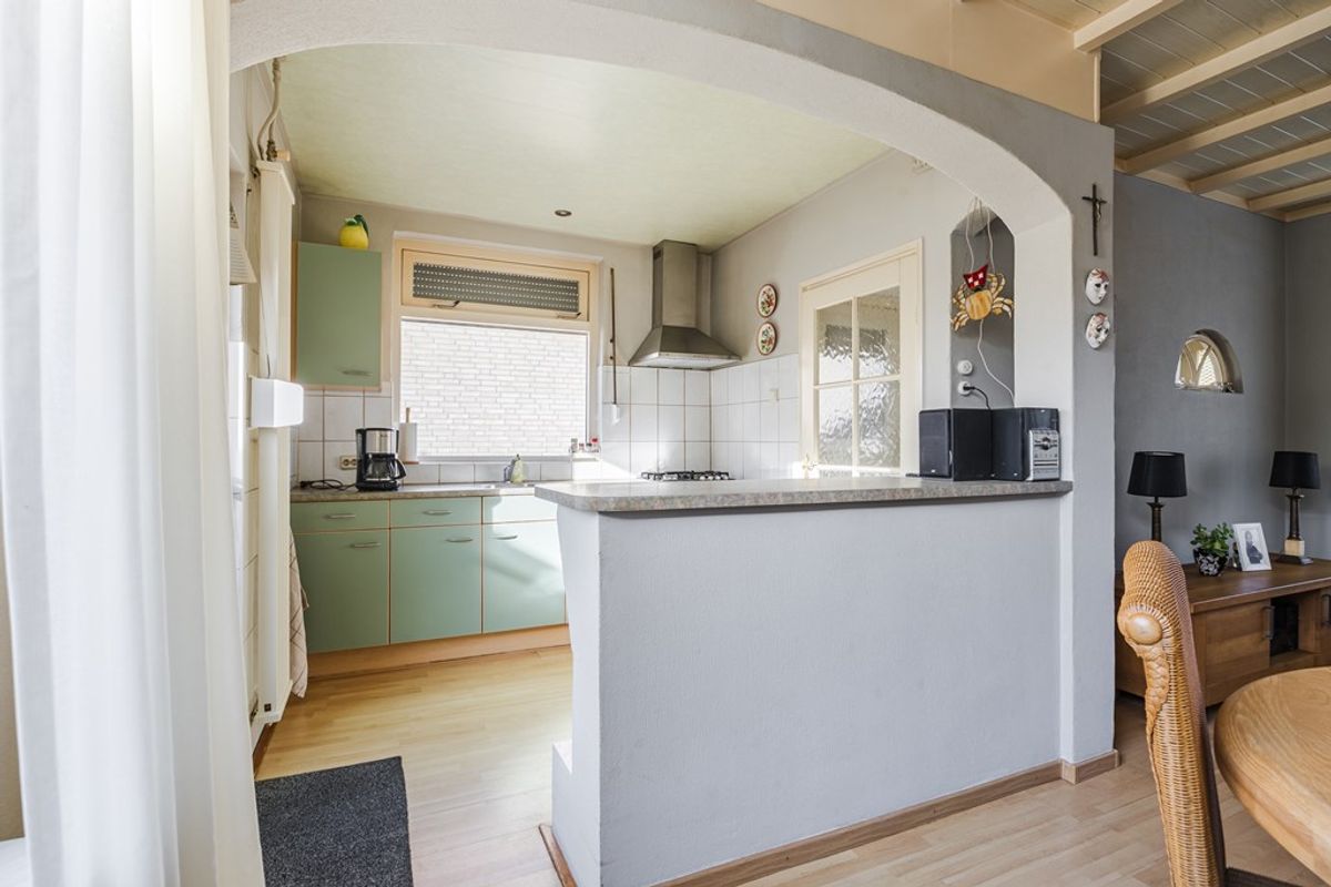 We komen binnen in de hal, waar je de meterkast (twee groepen), een trapkast, de trapopgang naar de verdieping en het toilet terugvindt. Vanuit hier lopen we door de keuken naar de woonkamer. Een nette en lichte ruimte, een zogenaamde "doorzonwoonkamer", voorzien van HR++ beglazing met rolluiken. De open keuken aan de achterzijde is gedateerd, maar biedt een praktische indeling en toegang tot de tuin. De muur tussen keuken en woonkamer is in het verleden al doorgebroken en hierdoor kun je zonder moeite een moderne leefkeuken realiseren met een keukeneiland. Liever meer ruimte, dan is uitbreiden met een aanbouw een heel goed idee bij deze woning! De tuin is groot genoeg en een aanbouw zou zeker niet misstaan achter de woning.