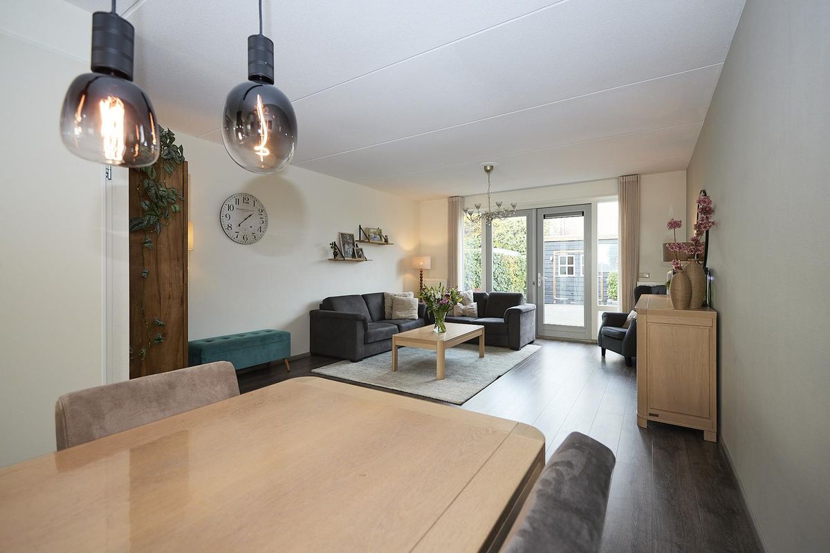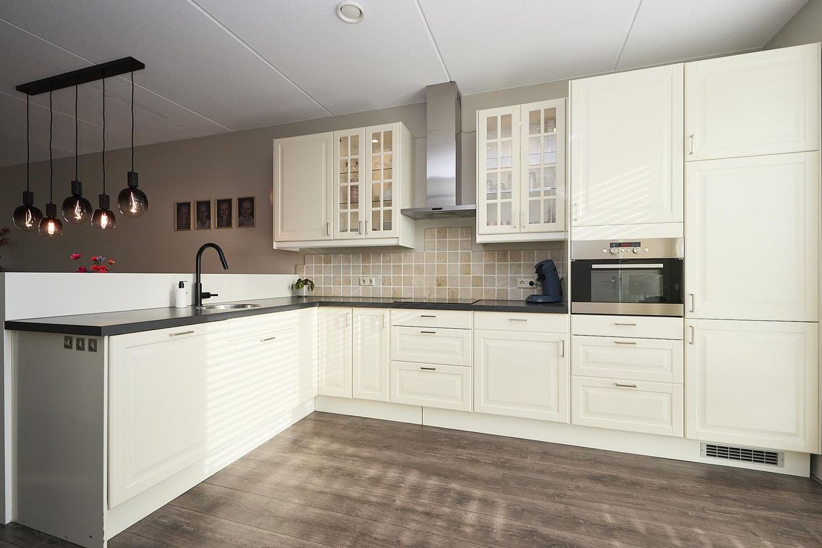 De lichte, ruime uitgebouwde woonkamer verwelkomt je direct en is volledig instapklaar. De nette laminaatvloer loopt door tot in de keuken en hal en zorgt voor een sfeervolle, uniforme uitstraling. Via de tuindeur stap je zo het terras op. De open keuken is modern en praktisch ingericht en voorzien van diverse inbouwapparatuur: ideaal voor zowel dagelijkse maaltijden als culinaire avonturen.