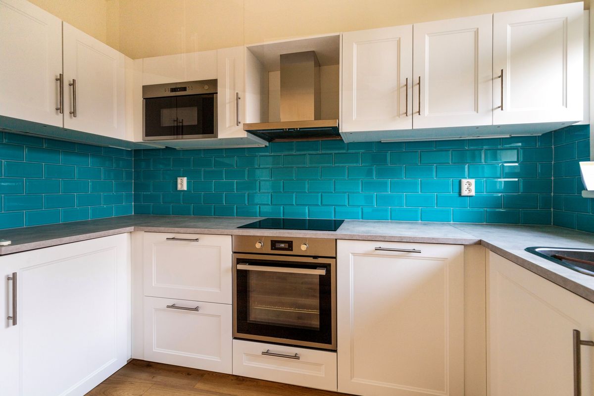 The bright and spacious living room is located at the front of the apartment. There’s more than enough room for a large dining table, a comfortable corner sofa, coffee table, and television. The open kitchen is fully equipped with a modern induction hob, extractor hood, sink, dishwasher, fridge with freezer, large oven, and separate microwave. From the kitchen side of the living room, you can access the balcony, perfect for enjoying your morning coffee or the afternoon sun.