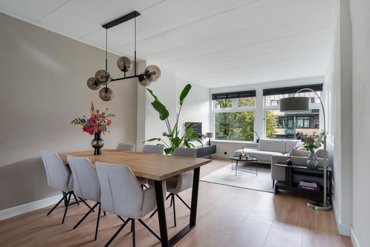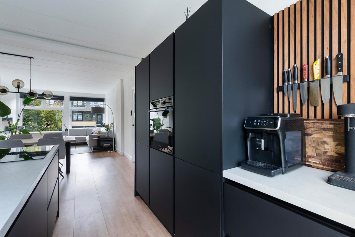 Ruime hal met meterkast, separaat toilet en toegang tot alle vertrekken op deze verdieping. Zodra je binnenkomt, valt meteen de royale lengte van de woonkamer op, met een lengte van ca. 11 meter! De karakteristieke ornamenten aan de muur en de sfeervolle glas-in-loodramen geven de ruimte een unieke, warme uitstraling. Het woongedeelte ligt aan de voorzijde en biedt meer dan genoeg ruimte om een heerlijke zithoek te creëren. Het woongedeelte staat in directe verbinding met het eetgedeelte en de open keuken. De open keuken met kookeiland is stijlvol afgewerkt en vormt de perfecte plek waar koken en gezelligheid samenkomen. Hier blijf je gemakkelijk in contact met je gezelschap terwijl je geniet van de open, sfeervolle ruimte. De keuken beschikt over diverse soorten inbouwapparatuur zoals een 4-pits elektrische kookplaat met geïntrigeerde afzuiging, vaatwasser, quoocker, oven en een koel-/vriescombinatie. Via openslaande deuren gelegen in de keuken bereik je het 1e balkon gelegen op het westen. Hier kan je heerlijk genieten van de einde middag-/ avondzon. De 1e slaapkamer is gelegen aan de achterzijde en heeft ook toegang tot het balkon, gelegen op het westen. Deze kamer is multifunctioneel in te richten, bijvoorbeeld als kinder- of slaapkamer, of zelfs als inloopkast. De kamer aan de voorzijde is ideaal te gebruiken als home-office.