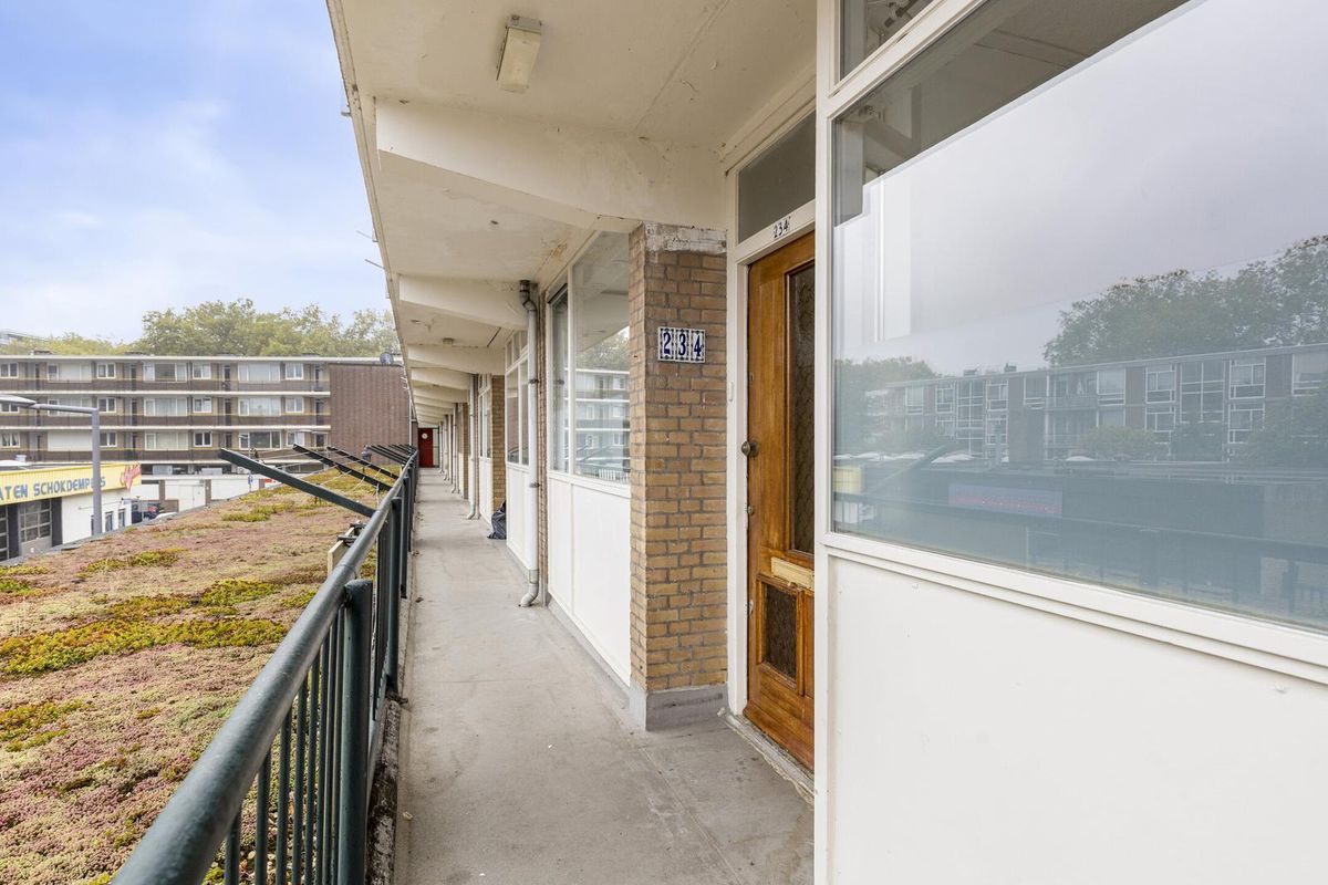 * De entree is aan beide kopse zijde van het appartementencomplex. Via de galerij loop je naar de woning.