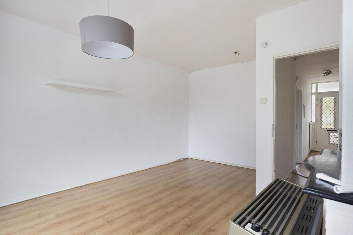 * Lichte woonkamer met schouw en moederhaard, laminaatvloer en een deur naar het: