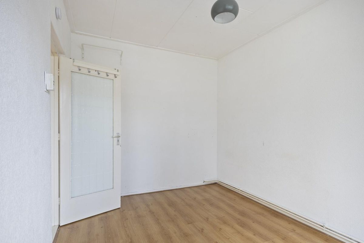 * Slaapkamer aan de galerijzijde, verdeeld over twee ruimten met laminaatvloer.