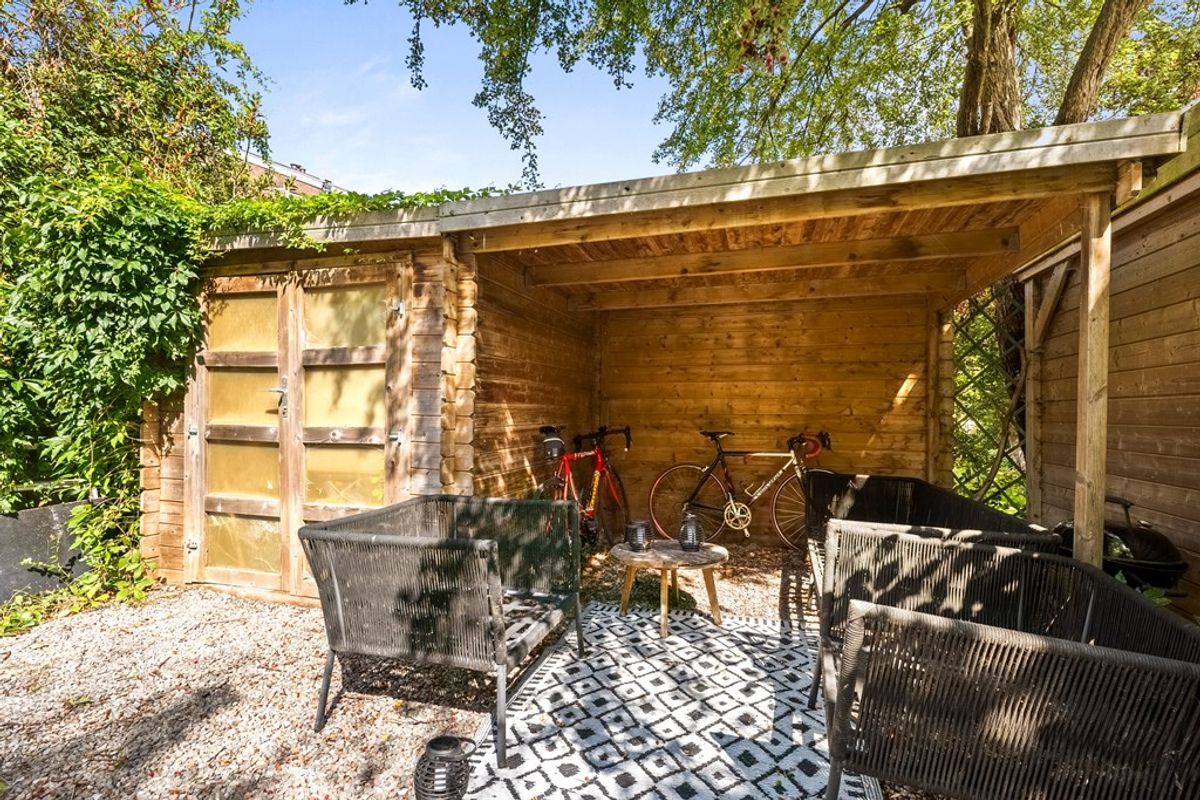 De 15 meter diepe en zonnige achtertuin is een waar verlengstuk van de woning. Hier vind je een schuur én een fijne overkapping, ideaal om het hele jaar door van je buitenruimte te genieten. Door de diepte van de achtertuin heb je hier in de zomermaanden altijd wel een plekje om in de zon te zitten.
