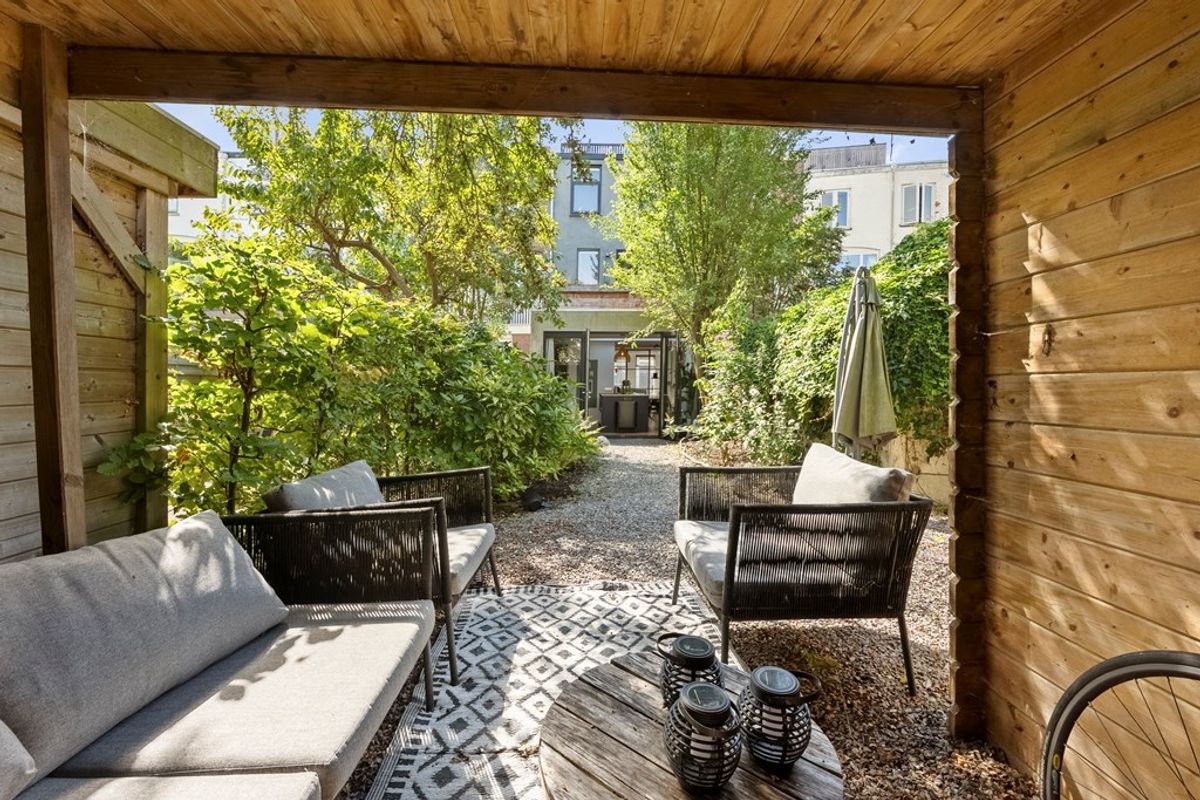 The 15-meter deep and sunny backyard is a true extension of the home. Complete with a shed and covered terrace, it’s ideal for enjoying the outdoors all year round. Thanks to its depth, you will always find a sunny spot here in the summer months.