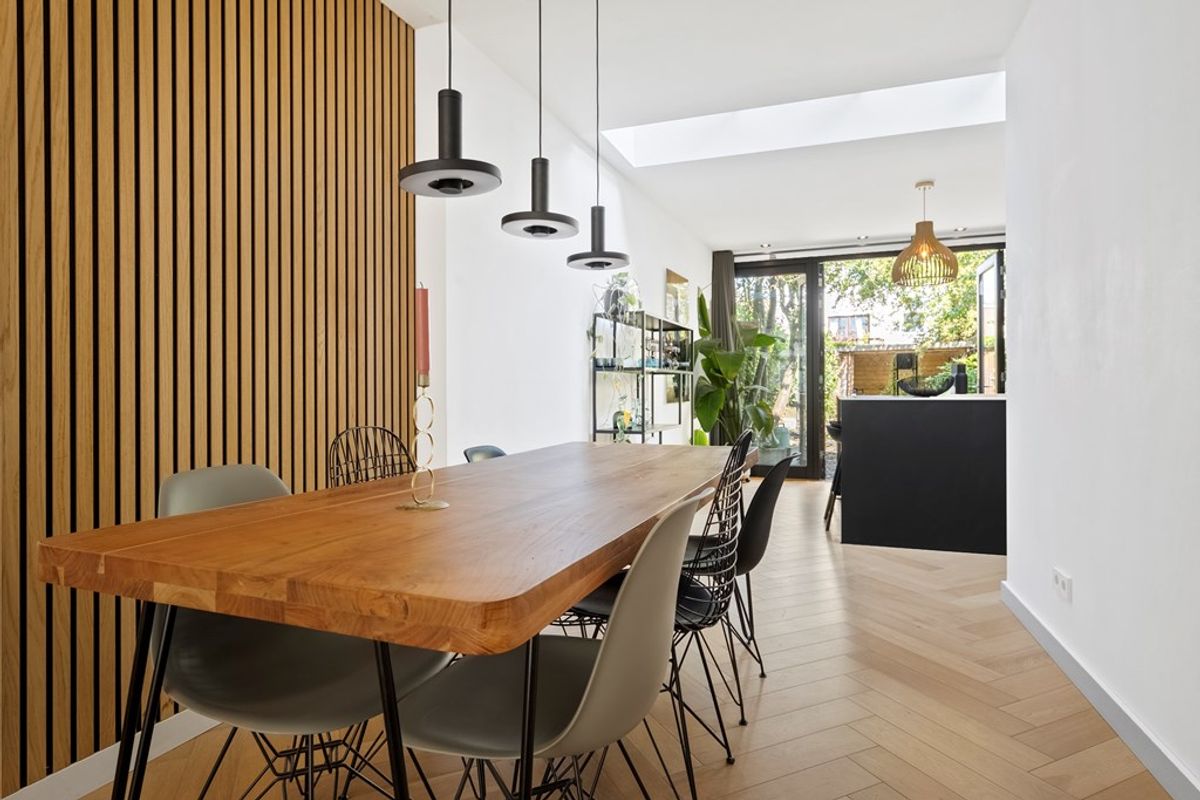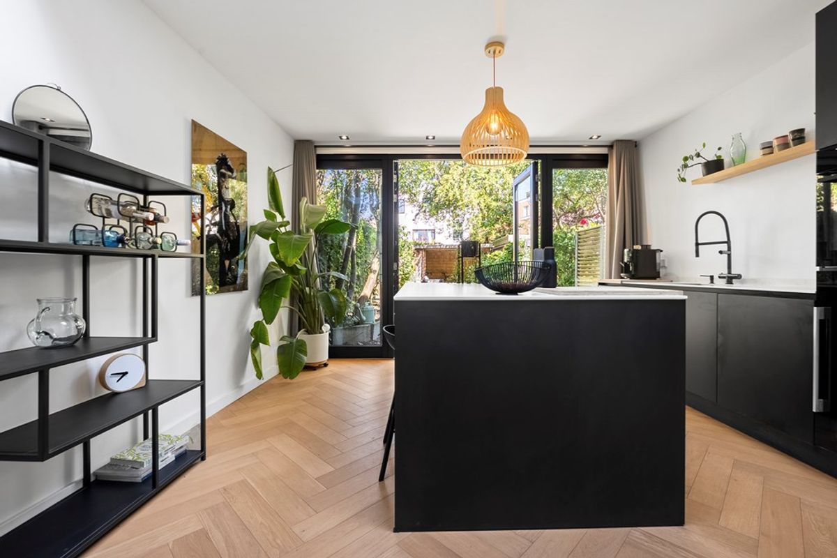 Looking for a home where style, comfort, and luxury come together? This beautifully finished ground-floor apartment on Schermerstraat is definitely worth a visit. With 2 bedrooms, a rear extension with modern open kitchen and skylight, a 15-meter deep garden, and high-quality details such as a herringbone wooden floor, underfloor heating, and steel pivot doors, this home is both elegant and practical.