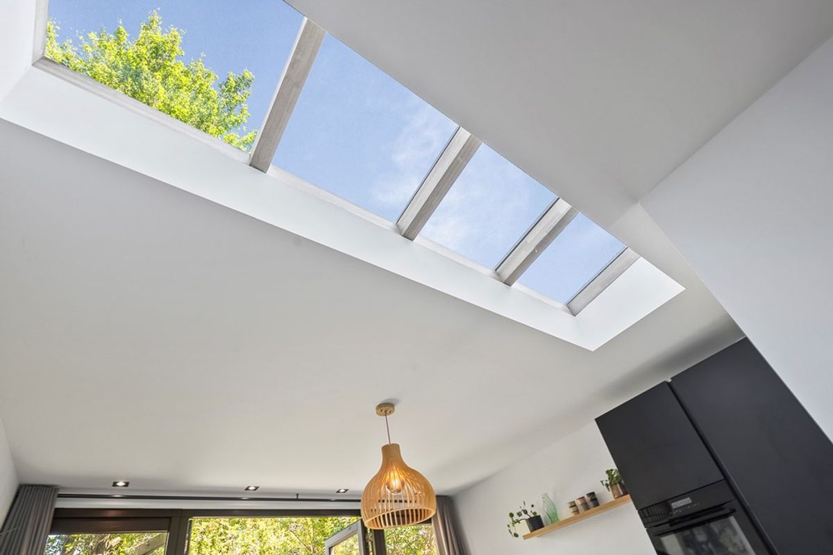 Via indrukwekkende, 3 meter hoge stalen taatsdeuren met glas bereik je de ruime slaapkamer aan de voorzijde. De tweede slaapkamer, voorzien van dakraam, is uitstekend geschikt als logeer- of werkkamer.