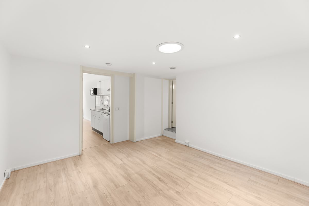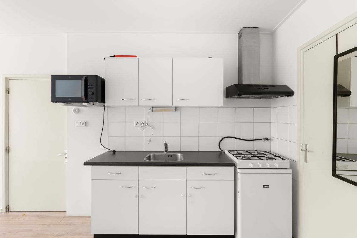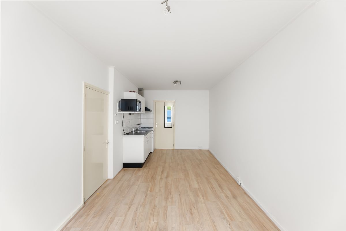Indeling studio: woonkamer (ca. 18 m²) v.v. een nieuwe laminaatvloer en een eenvoudig keukenblok v.v. diverse losse apparatuur. Slaapruimte (ca. 14 m²) v.v. laminaatvloer en een aangrenzende nette badkamer v.v. douchecabine met thermostaatkraan, wastafel en toilet.