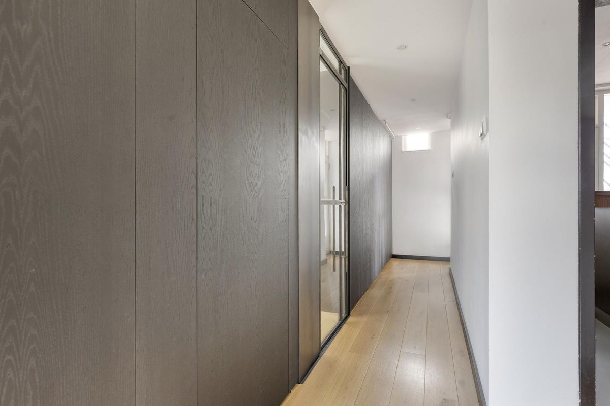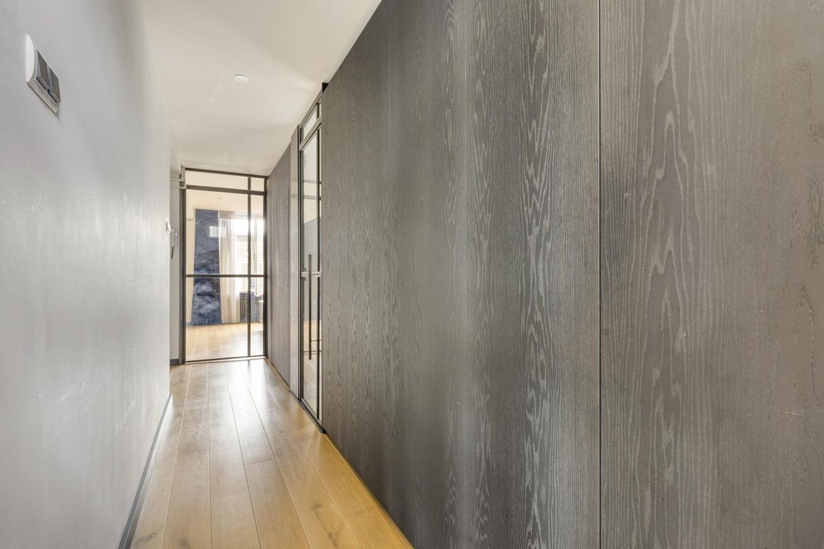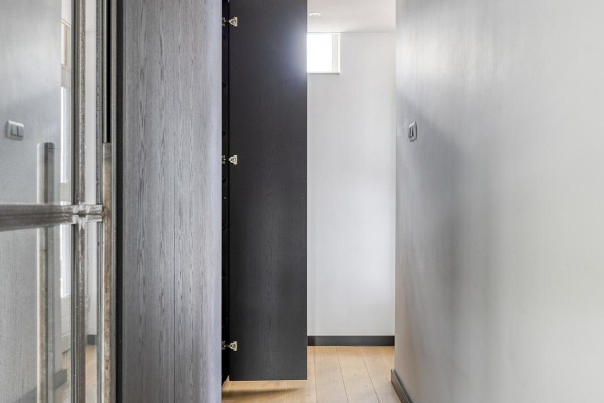 - Entree: De hal is stijlvol afgewerkt met een warme houten vloer en beschikt over een praktische inbouwkast. Dankzij de glazen deur oogt de ruimte licht en modern, met toegang tot de verschillende vertrekken.