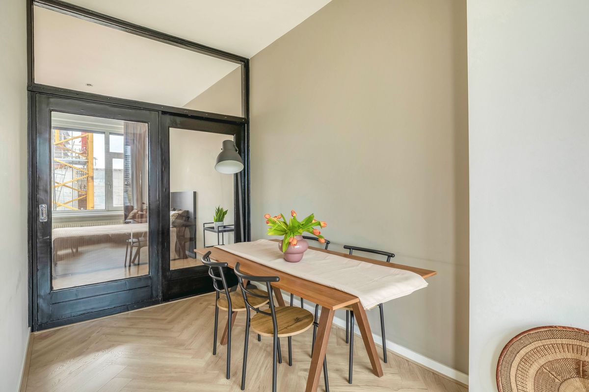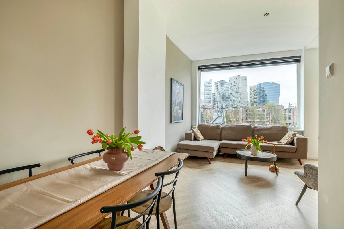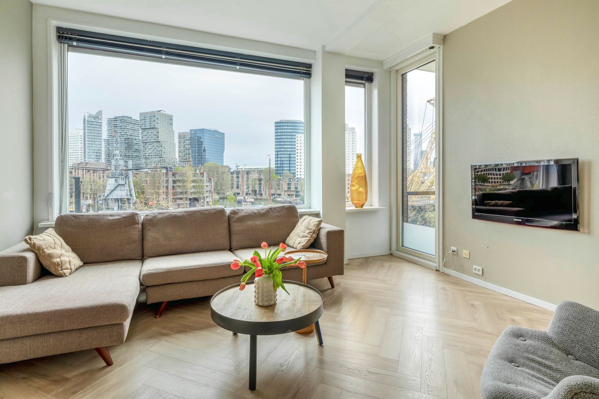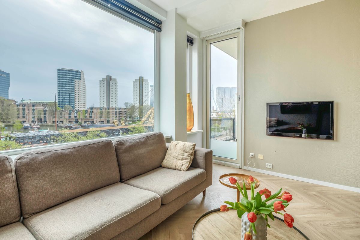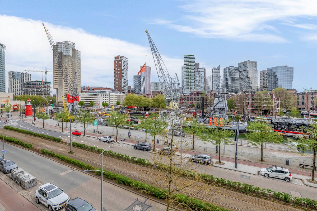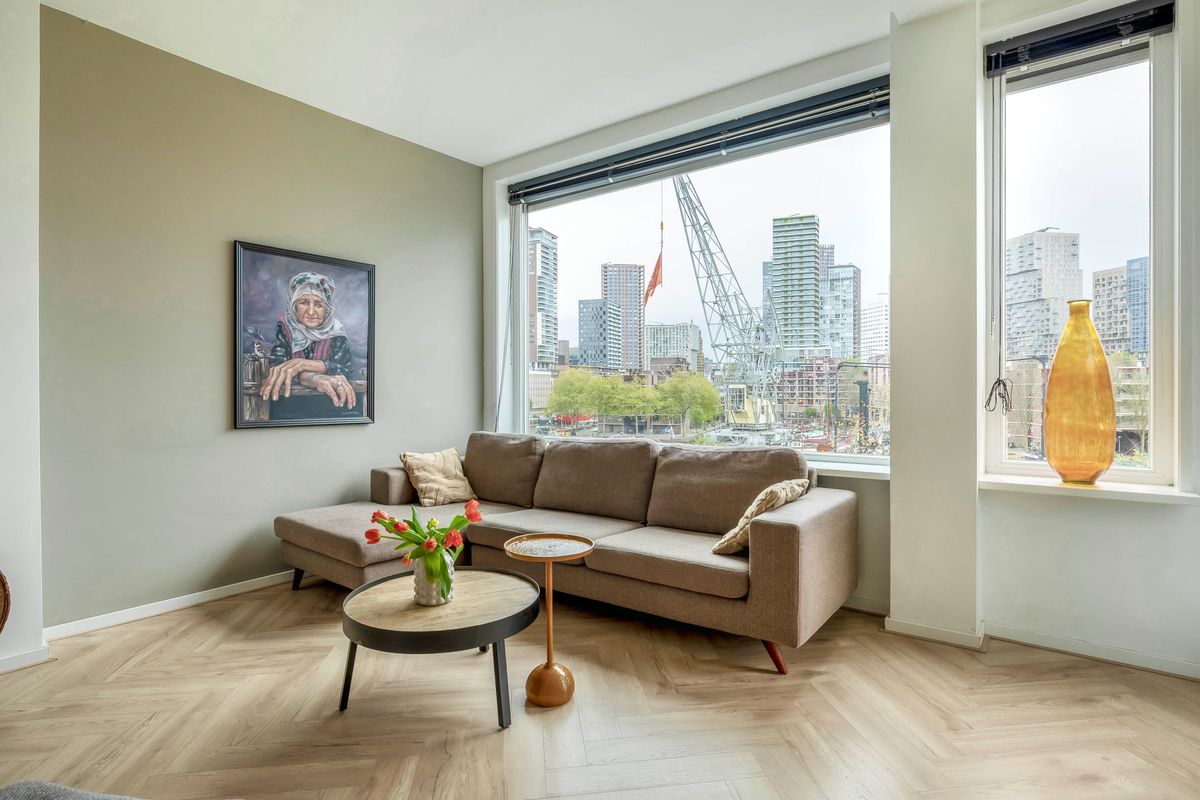 Met een prachtig uitzicht over de Leuvehaven en de voorbijvarende boten en watertaxi's geniet je hier elke dag van het levendige Rotterdamse stadsbeeld!