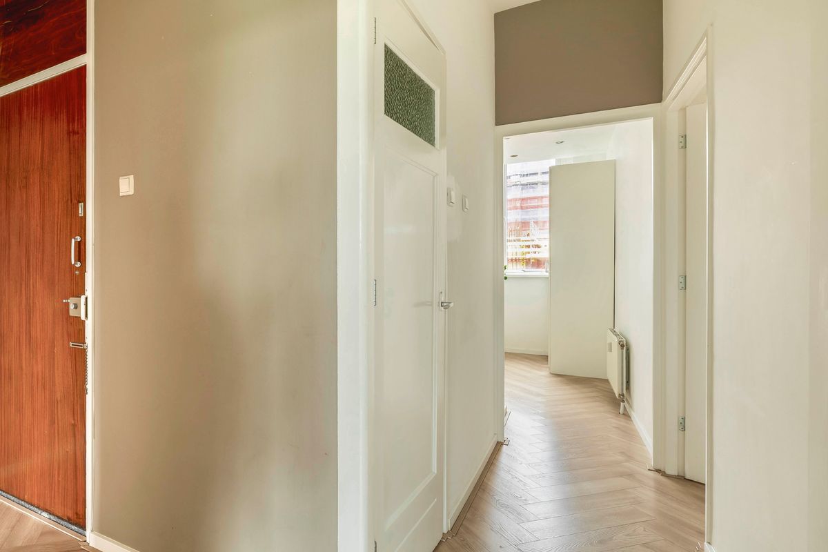 Binnenkomst in een ruime en lichte L-vormige hal. Vanuit de hal is er toegang tot alle vertrekken in het appartement. Al gelijk valt op dat de woning netjes is afgewerkt met een mooie visgraat vloer en strakke wanden en plafonds met inbouwspots!