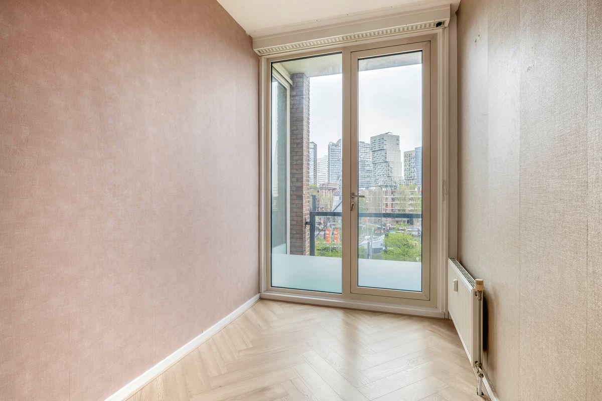 Via de woonkamer heb je toegang tot het balkon met prachtig zicht op de haven en ook de Erasmusbrug is vanaf hier te zien. Het balkon is op het oosten gelegen, waardoor hier in de ochtend genoten kan worden van de zon.