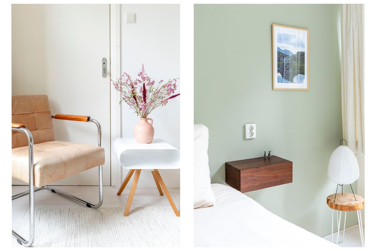 De slaapkamer is aan de achterzijde gelegen en biedt rust en privacy. Vanuit de kamer kijkt u uit over het groen, wat een bijzonder aangenaam uitzicht geeft. De kamer is netjes afgewerkt en groot genoeg voor een tweepersoonsbed en een royale kledingkast.