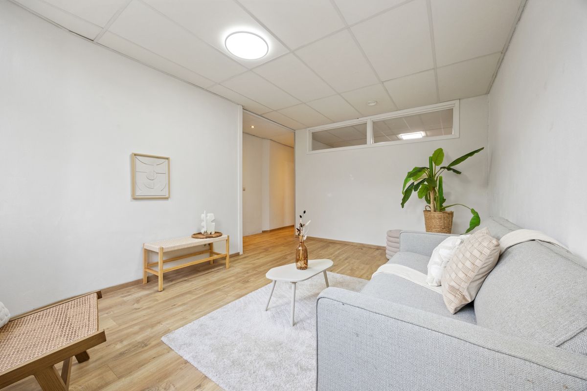 Bij binnenkomst is er direct plek voor je garderobe, wat prettig werkt in het dagelijks gebruik. De woonkamer ligt aan de voorzijde en profiteert door de raampartij van veel daglicht voor een souterrainruimte. De indeling biedt ruimte voor een hoekbank, tv-meubel en salontafel en eventueel nog een mooie stoel. De ruimte voelt overzichtelijk en biedt genoeg flexibiliteit om de opstelling naar eigen smaak in te richten.