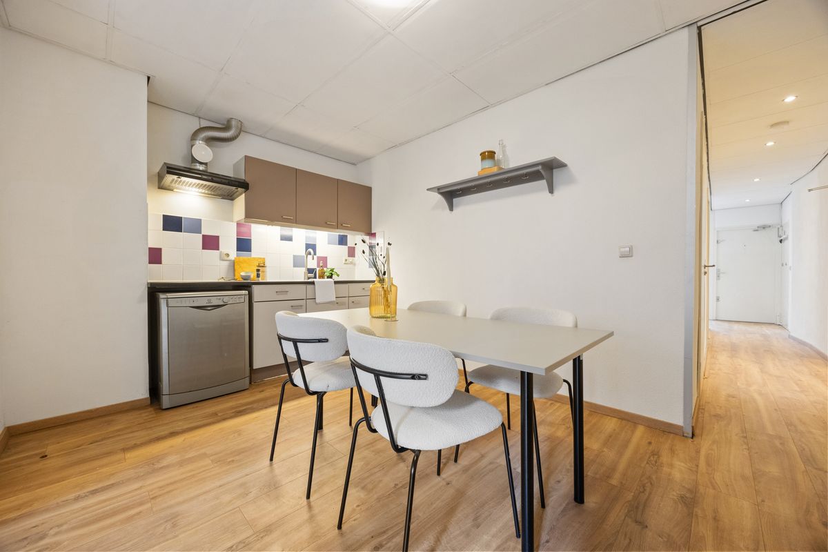 Achterin het appartement liggen de eetkamer en de keuken. De eetruimte is groot genoeg voor een tafel met vier personen en staat in verbinding met de tuin. De huidige keuken heeft een aansluiting voor een vaatwasser; er zijn verder geen vaste inbouwapparaten aanwezig. Dat geeft je de vrijheid om de keuken naar eigen smaak en budget in te richten, een mooie kans om meteen je ideale keuken te plaatsen en te kiezen voor apparatuur die bij jouw leefstijl past.