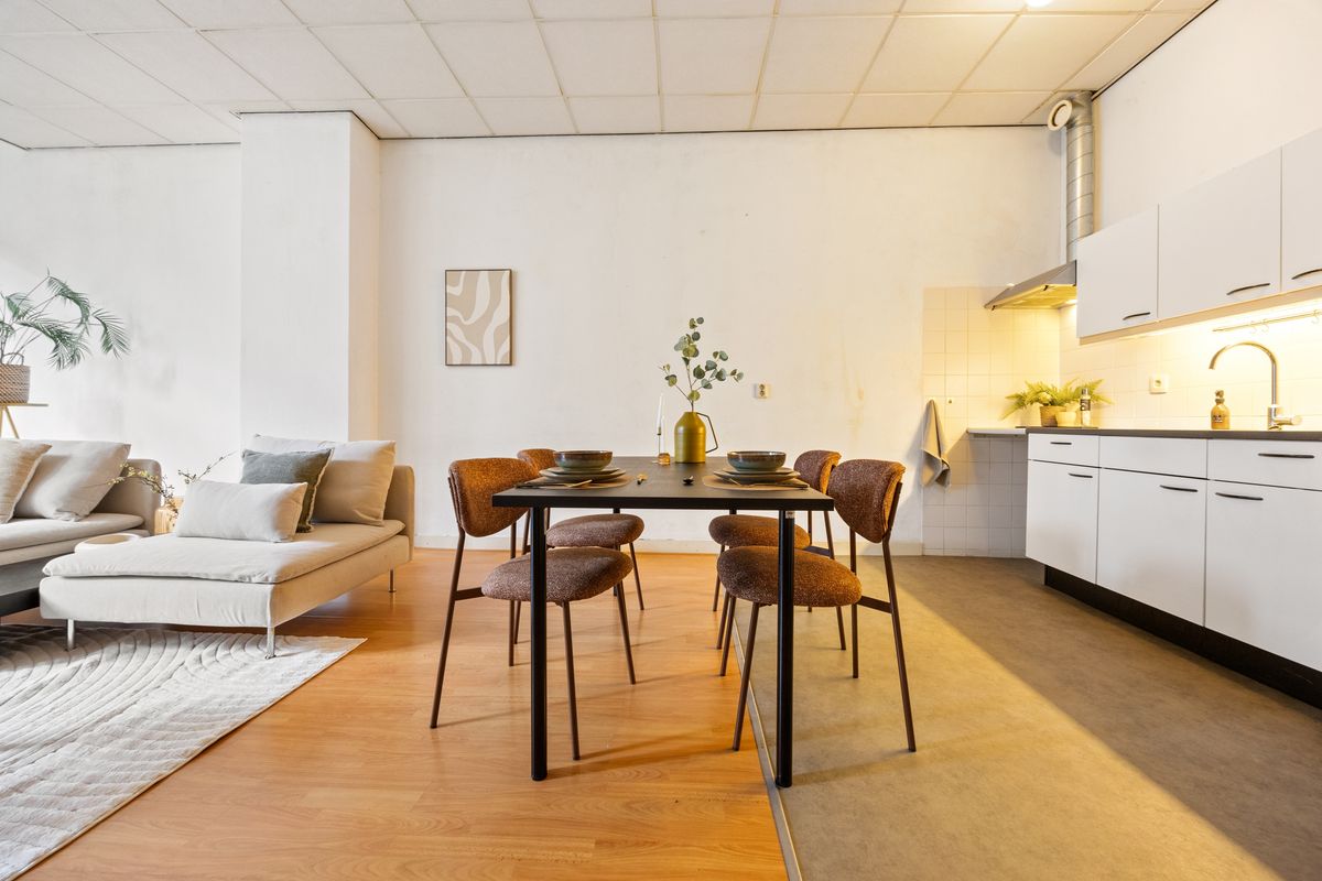 Aansluitend ligt de eetruimte, groot genoeg voor een gezellige eettafel met vier stoelen. Deze staat in open verbinding met de woonkamer, wat zorgt voor een fijne, lichte leefruimte waar koken, eten en ontspannen moeiteloos in elkaar overlopen. De open keuken en eetkamer vormen samen een gezellige leefruimte. Dankzij de open opzet blijft alles met elkaar verbonden, wat zorgt voor een ruimtelijk en sociaal gevoel, perfect voor etentjes of ontspannen avonden thuis.