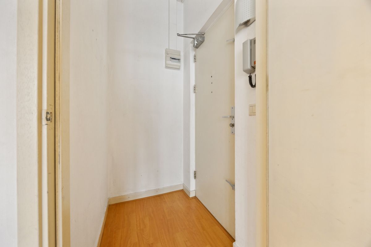 Via de gezamenlijke entree op straatniveau stap je het karakteristieke pand binnen. De trap brengt je naar de eerste verdieping, waar het appartement zich bevindt.