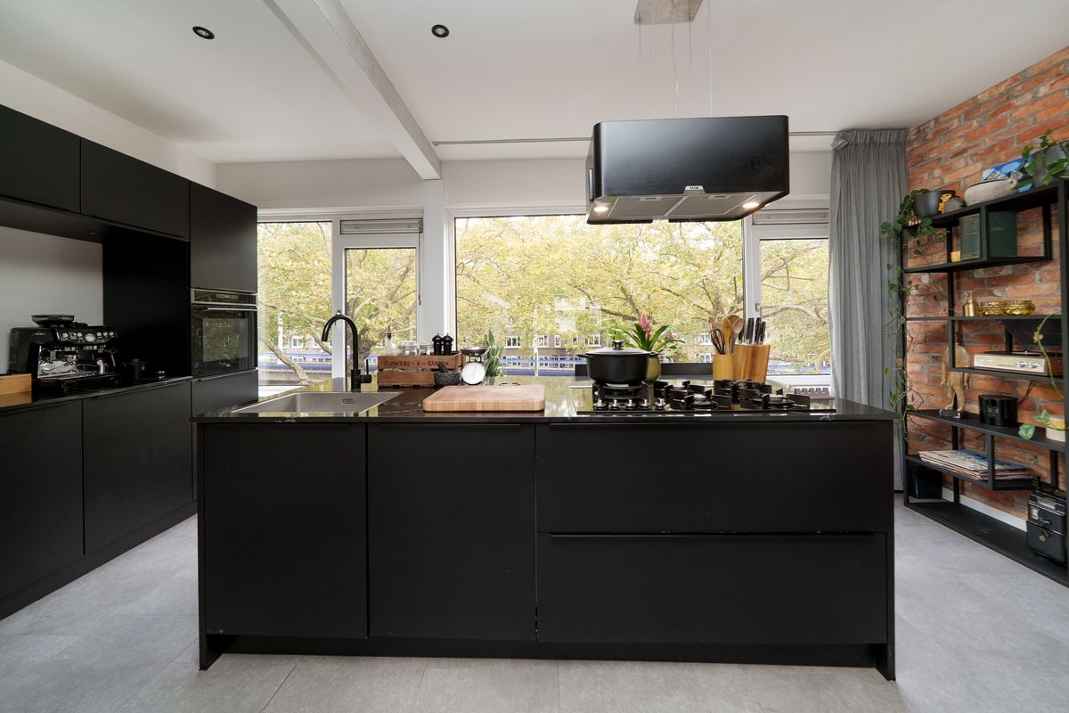 De open keuken is aan de voorzijde gelegen. De luxe, prachtige keuken is in het zwart uitgevoerd met een zwart natuurstenen keukenblad en is voorzien van alle luxe. Het kookeiland is voorzien van een 5-pis gaskookplaat met design afzuigkap, wasbak met mengkraan en vaatwasser. De wandopstelling is voorzien van voldoende opbergmogelijkheid, koelkast, vriezer en oven. Hier is een gezellige, ruime nis die verlicht is met inbouwspots, een goede plek voor een mooi koffiezetapparaat.