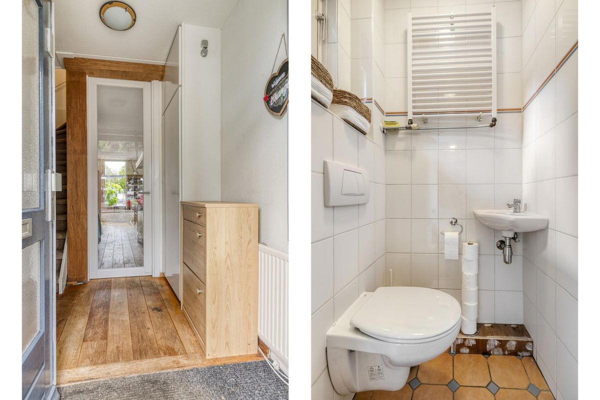 Je parkeert gemakkelijk op je eigen, bestraatte oprit. Via de voortuin bereik je de voordeur en stap je binnen in de hal, waar zich het toilet en de trap naar de eerste verdieping bevinden. Loop je rechtdoor, dan kom je in het hart van de woning: de royale leefkeuken.