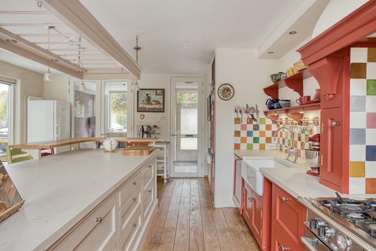 Sfeervolle en ruime hoekwoning met veel lichtinval, eigen oprit, op maat gemaakte keuken met kookeiland, lichte aanbouw met hoge plafonds en een royale tuin.