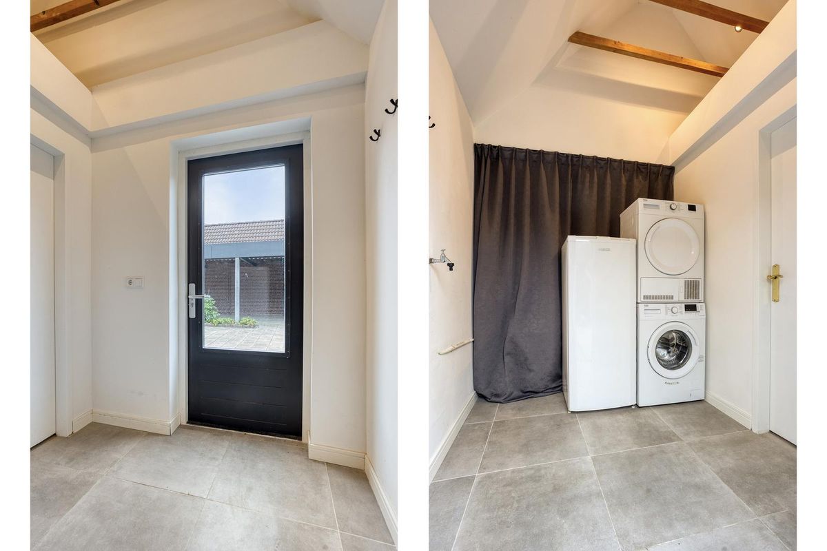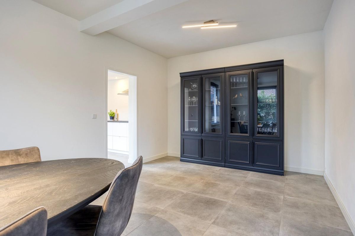 Via de voordeur stap je binnen in een lichte en verzorgde hal, voorzien van een toiletruimte (2010), die toegang biedt tot de woonkamer. Zodra je de woonkamer binnenkomt, valt direct de ruimte en rust op. De grote ramen zorgen voor veel natuurlijk licht, waardoor de kamer een warme en open uitstraling heeft. De zithoek is ruim opgezet en biedt voldoende plek voor een royale bank. De keuken bevindt zich aan de achterzijde van de woning en is modern en functioneel ingericht. Het keukenblok heeft een rechte opstelling, biedt volop opbergruimte en is voorzien van diverse inbouwapparatuur. Dankzij het grote raam met uitzicht op de tuin is het hier heerlijk licht. Aangrenzend bevindt zich de bijkeuken, die is voorzien van witgoedaansluitingen en een loopdeur naar de tuin.