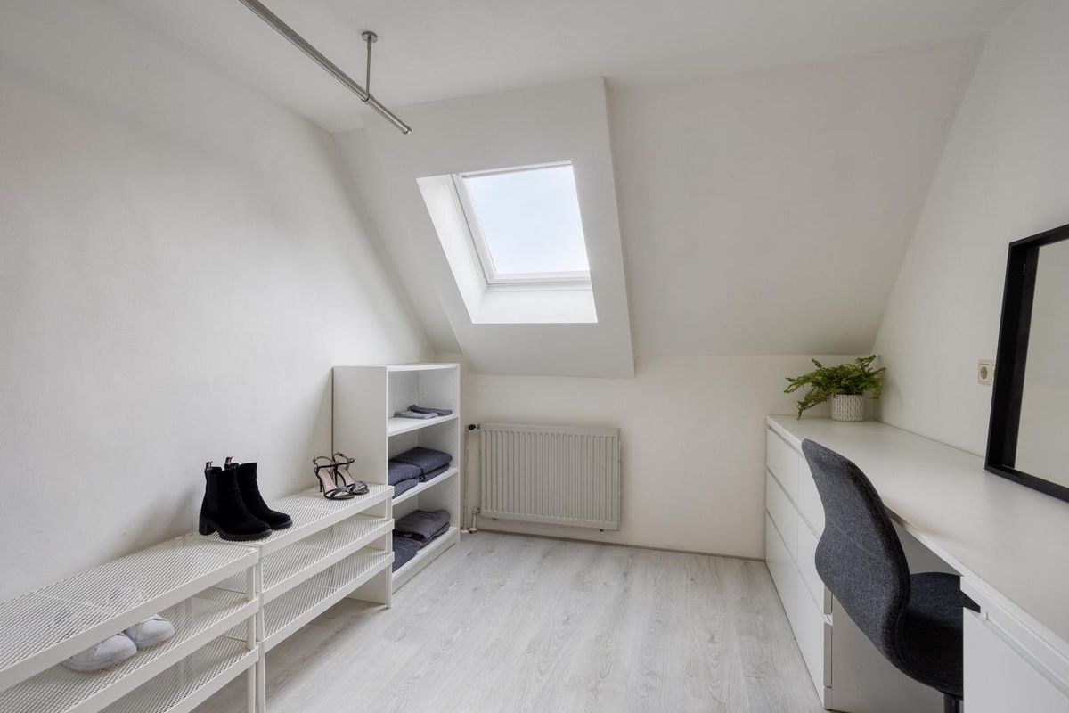 Via een vaste trap is de tweede verdieping bereikbaar. Een verrassend ruime en lichte zolderverdieping die volop mogelijkheden biedt. Dankzij de twee grote dakramen valt er veel natuurlijk licht binnen, waardoor de ruimte prettig aanvoelt en veelzijdig te gebruiken is. Vanaf de overloop is er toegang tot een vierde slaapkamer. Daarnaast bevindt zich op deze verdieping de opstelling van de omvormer van de zonnepanelen en is er voldoende bergruimte aanwezig.