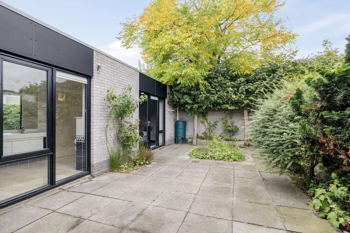 De tuin ligt op het zuidoosten, is onderhoudsvriendelijk aangelegd met fraaie bestrating, groene accenten en biedt bovendien veel privacy — een heerlijke plek om te genieten van rust en zon.
