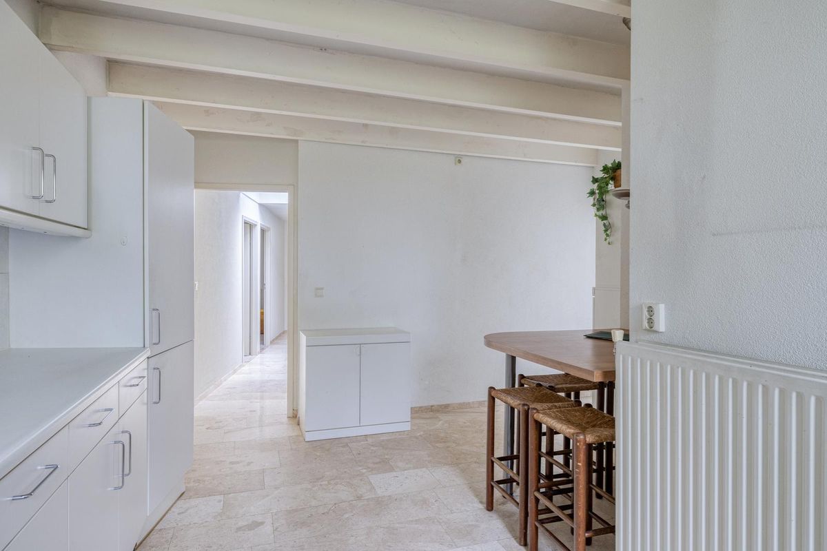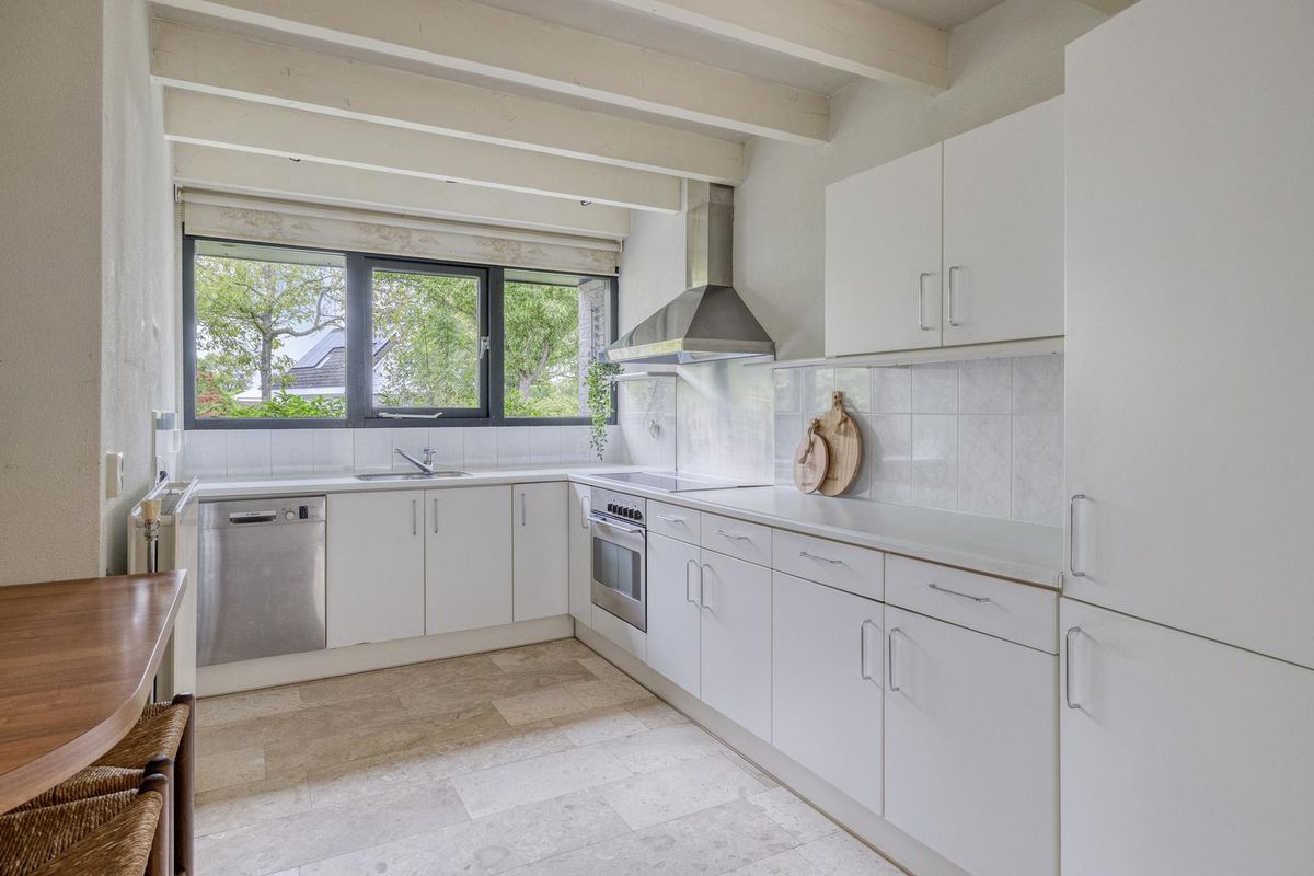 De woonkamer heeft openslaande deuren naar de tuin, waardoor binnen en buiten mooi in elkaar overlopen. De keuken is ruim opgezet en staat in verbinding met de slaapvleugel en de inpandige garage.