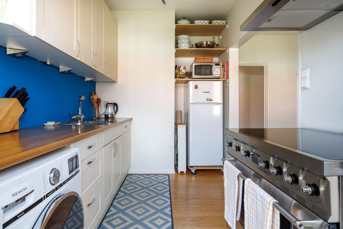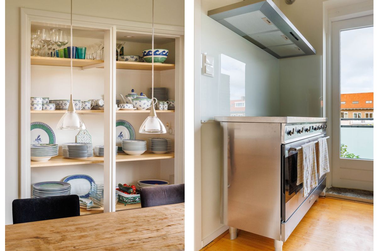 De royale woonkeuken bevindt zich aan de achterzijde en heeft een groot eetgedeelte. De lichte keuken beschikt o.a. over een inductiefornuis, een afzuigkap, een vaatwasser en veel kastruimte. Vanuit het eetgedeelte en de keuken heb je heerlijk uitzicht op de mooie binnentuin en toegang tot het balkon. Hier bevindt zich tevens de aansluiting voor de wasmachine.