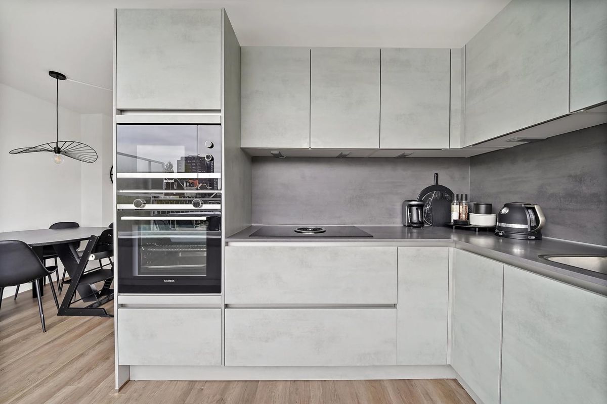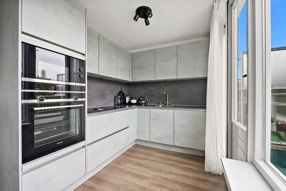 De keuken (eind 2018) is modern uitgevoerd in neutrale tinten en voorzien van diverse inbouwapparatuur, waaronder een oven, vaatwasser, koelkast en kookplaat.