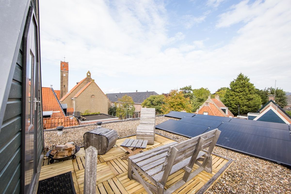 En als kers op de taart kom je via een vaste trap op de zolderkamer, met een deur naar het zonnige dakterras van ruim 7 m². Hier liggen ook de 10 zonnepanelen. Op de begane grond bevindt zich nog een extra berging.