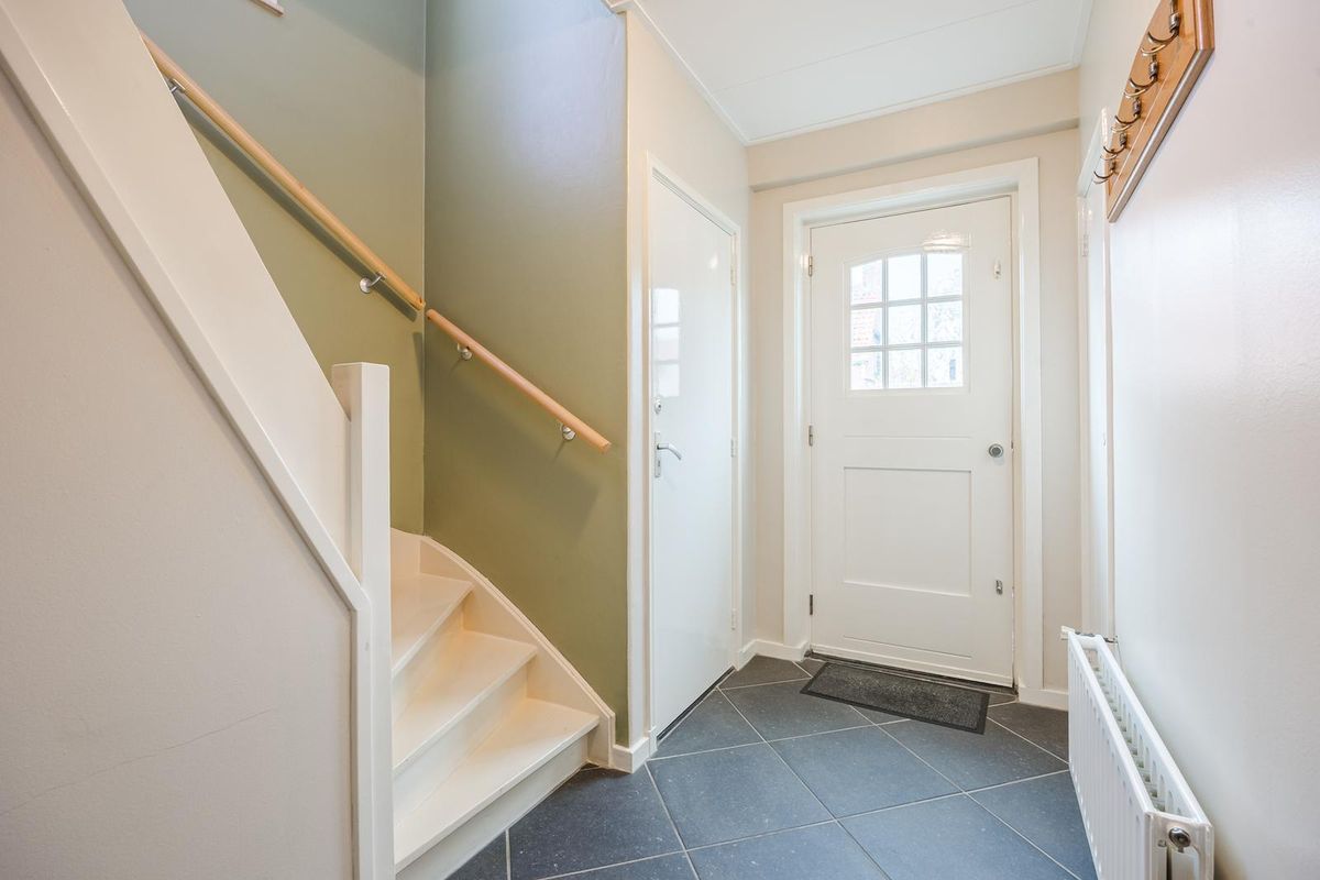 In de hal met tegelvloer vindt u de meterkast, toilet en trap naar de 1e verdieping.