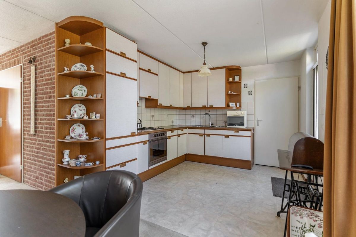 keuken, die dankzij de indeling uitermate geschikt is voor het creëren van een kookeiland met aangrenzend eetgedeelte. Via de tuindeur loop je zo de achtertuin in, waar de singel aan de achterzijde een groene en natuurlijke grens vormt.