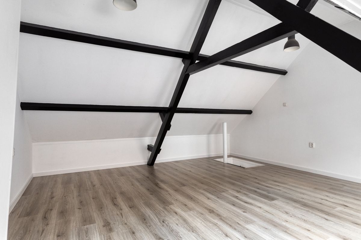 Op de verdieping bevindt zich een ruime slaapkamer over de volle breedte van het huis – groot genoeg om eventueel op te delen.