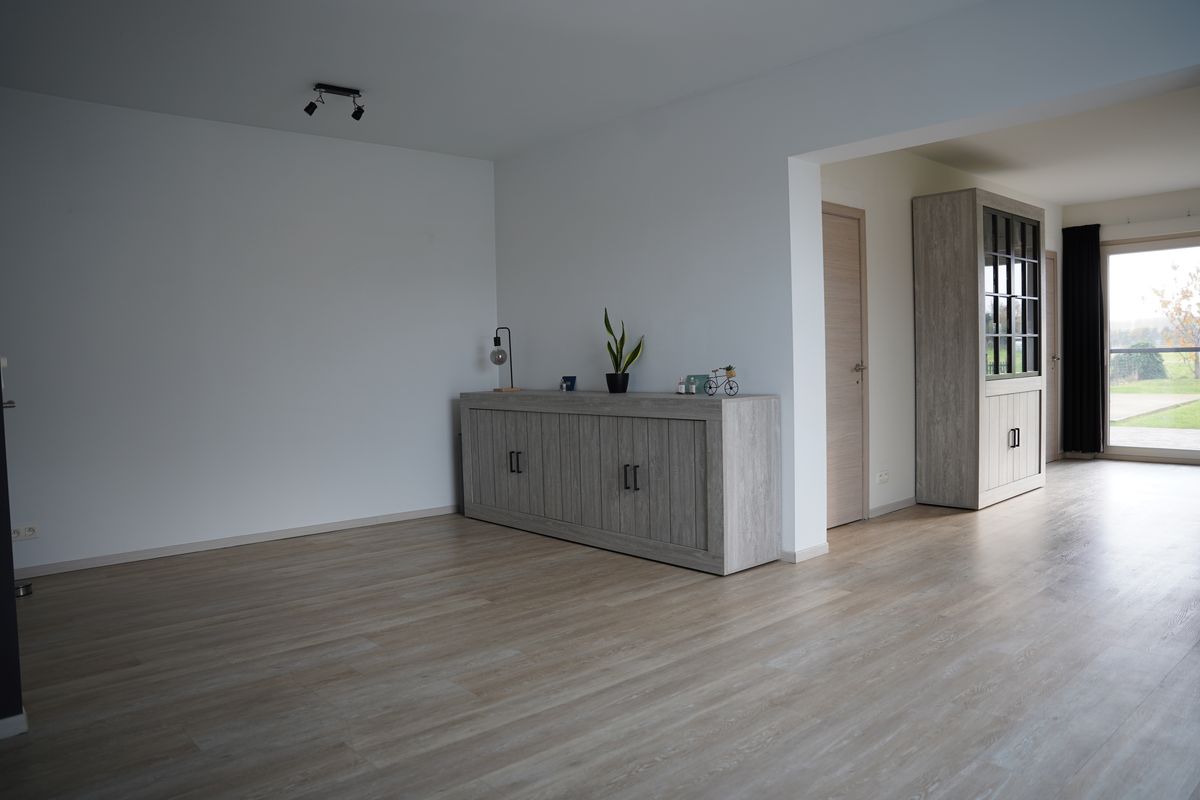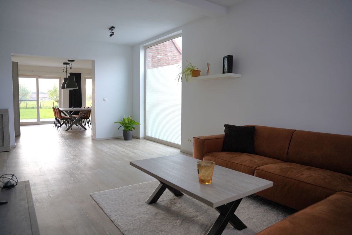 Door naar de heerlijk ruime woonkamer waar het daglicht rijkelijk binnenvalt.