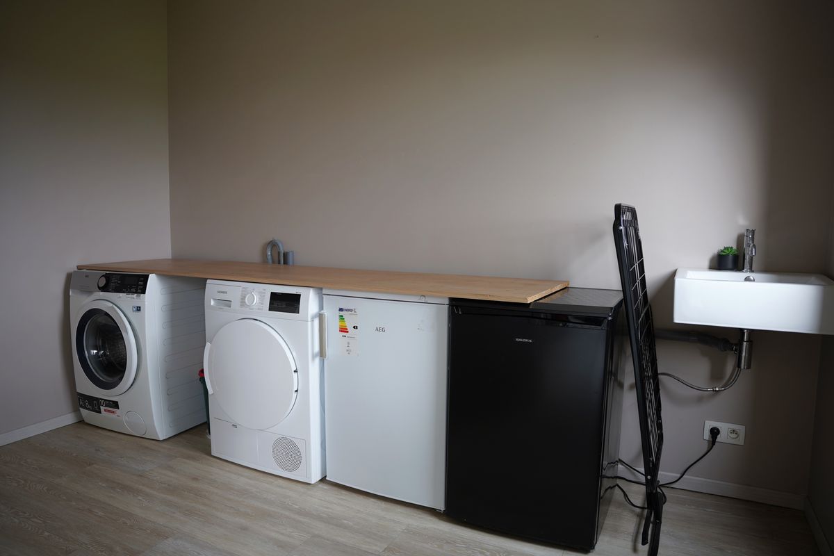 En nog een pluspunt: er is een ruime bijkeuken met aansluitingen voor al het nodige witgoed.