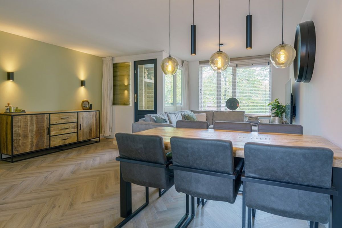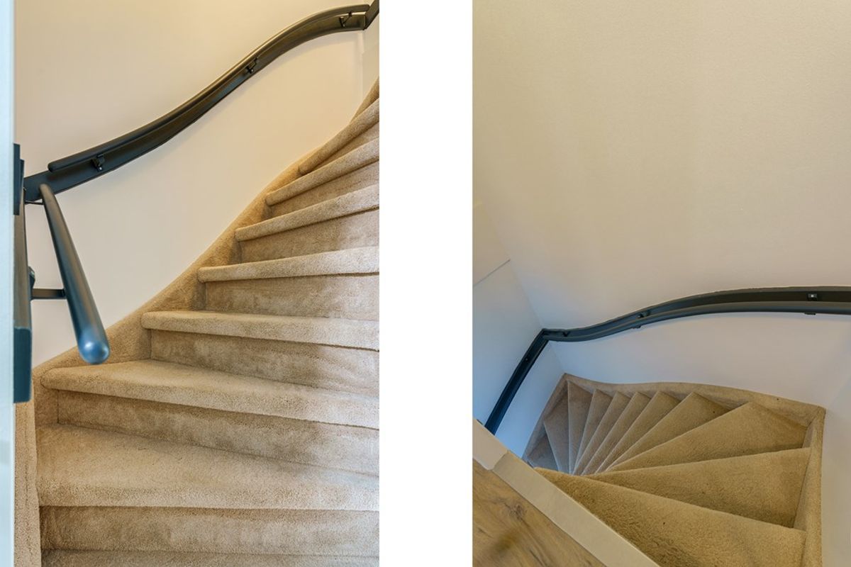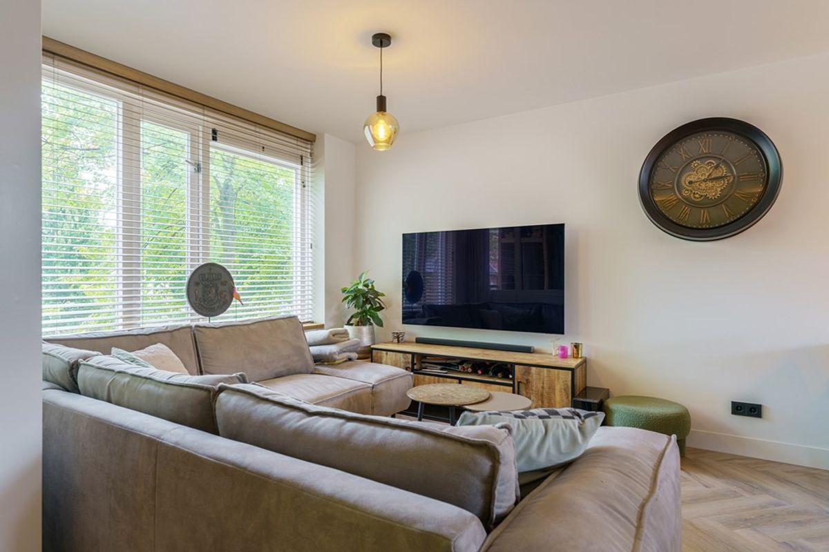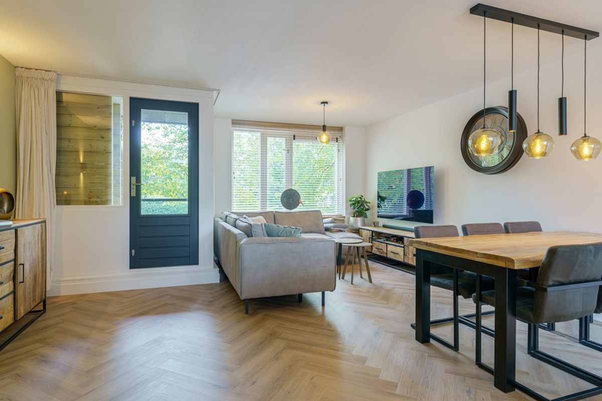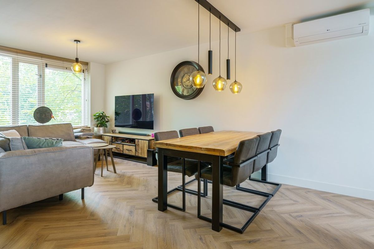 De living is verrassend licht dankzij ramen aan twee zijden, met een strakke PVC vloer in visgraatmotief en toegang tot het balkon. De halfopen keuken in rechte opstelling is uitgevoerd met greeploze fronten, een donker werkblad, een stijlvolle hexagon-mozaïek achterwand en diverse inbouwapparaten. De woonkamer biedt ruimte voor een royale zit- en eethoek en is keurig afgewerkt. Op de tweede verdieping geeft de overloop toegang tot drie ruime slaapkamers, waarvan één zich leent als inloopkast of werkplek.