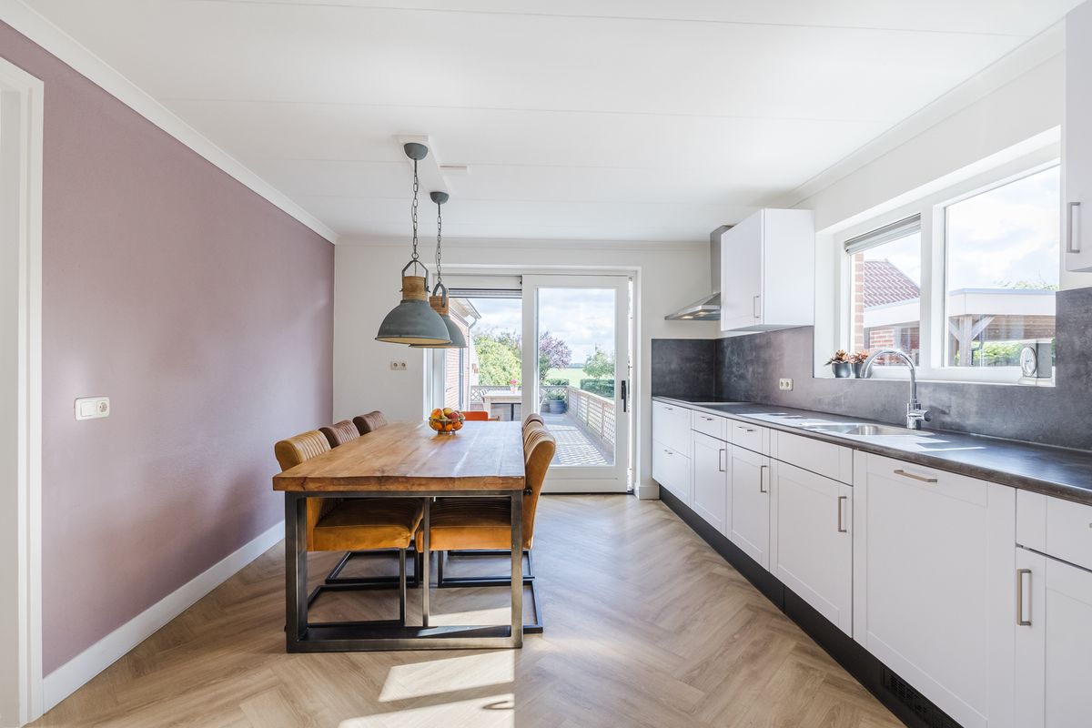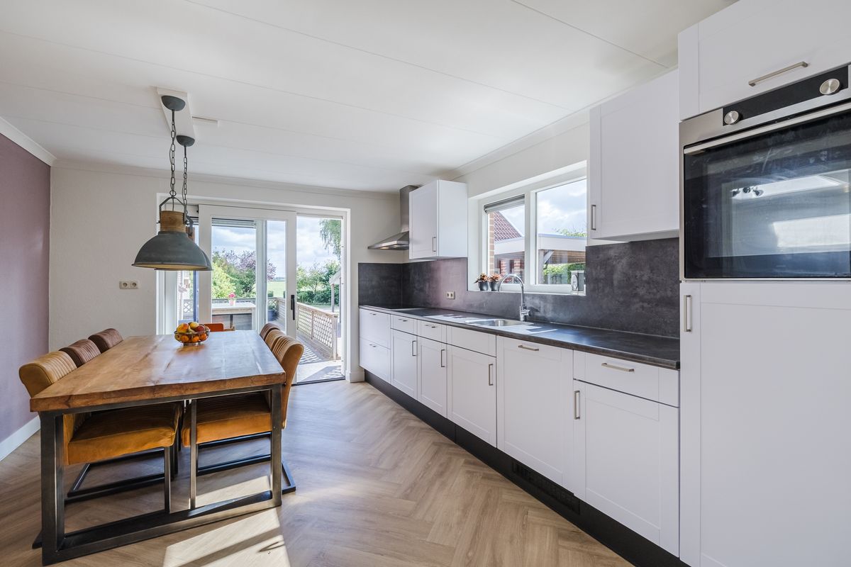 cv-ketel (2025) en toegang tot ruime half verdiepte kelderruimte, dichte woonkeuken met tuindeuren naar terras en moderne, luxe inbouwkeuken voorzien van alle noodzakelijke inbouwapparatuur, bijkeuken met opstelplaats wasmachine/droger, badkamer met douche-inrichting, ligbad en wastafelmeubel, afzonderlijk toilet met fontein, hal met kastruimte en achteringang, kantoorruimte, schuurruimte/hobbyruimte met vaste trap naar royale zolderruimte.
