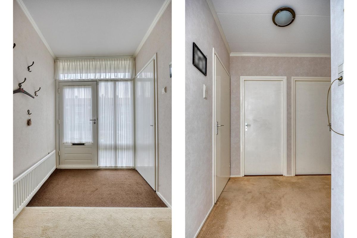Entreehal met meterkast, kruipruimteluik (met watermeter), vaste inbouwkast en vlizotrapluik naar de (slaap)zolderverdieping.