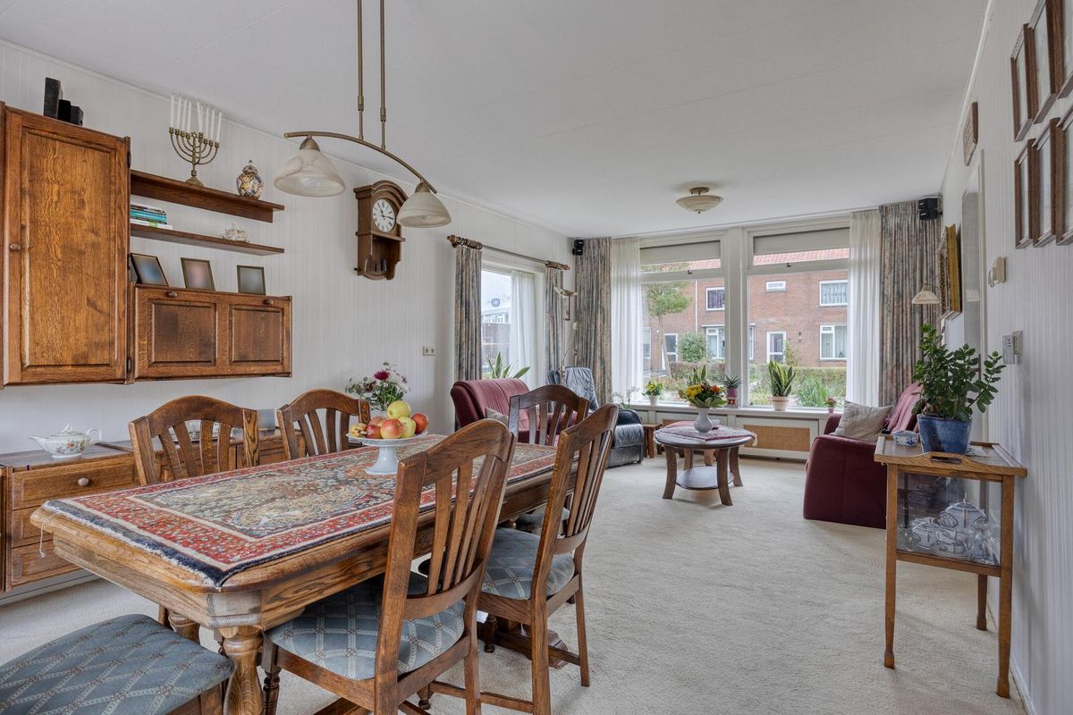 Doorzon-woonkamer met telefoon aansluiting, elektrisch bedienbare rolluiken (voor- en achterzijde) en radiator-lambrisering.
