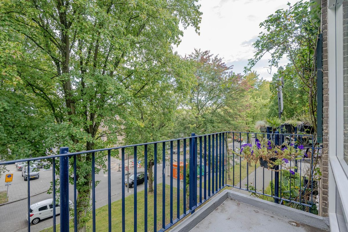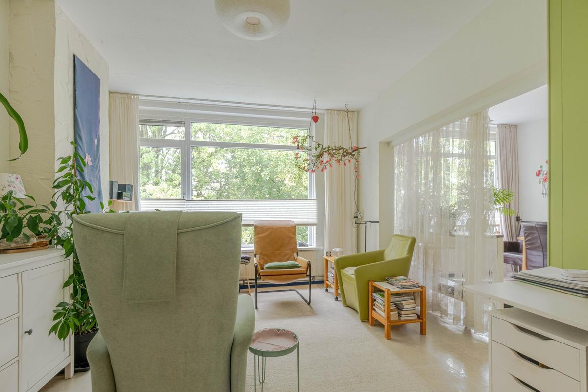 * Royale, doorgebroken woonkamer voorzien van kurkvloer, vaste kast en toegang tot het balkon aan de voorzijde.