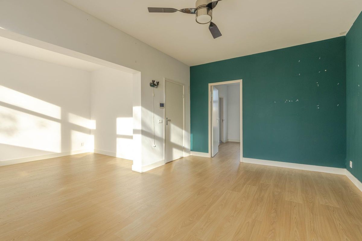 * Royale, doorgebroken woonkamer voorzien van laminaatvloer, gestucte wanden en plafond en toegang tot het balkon aan de voorzijde.