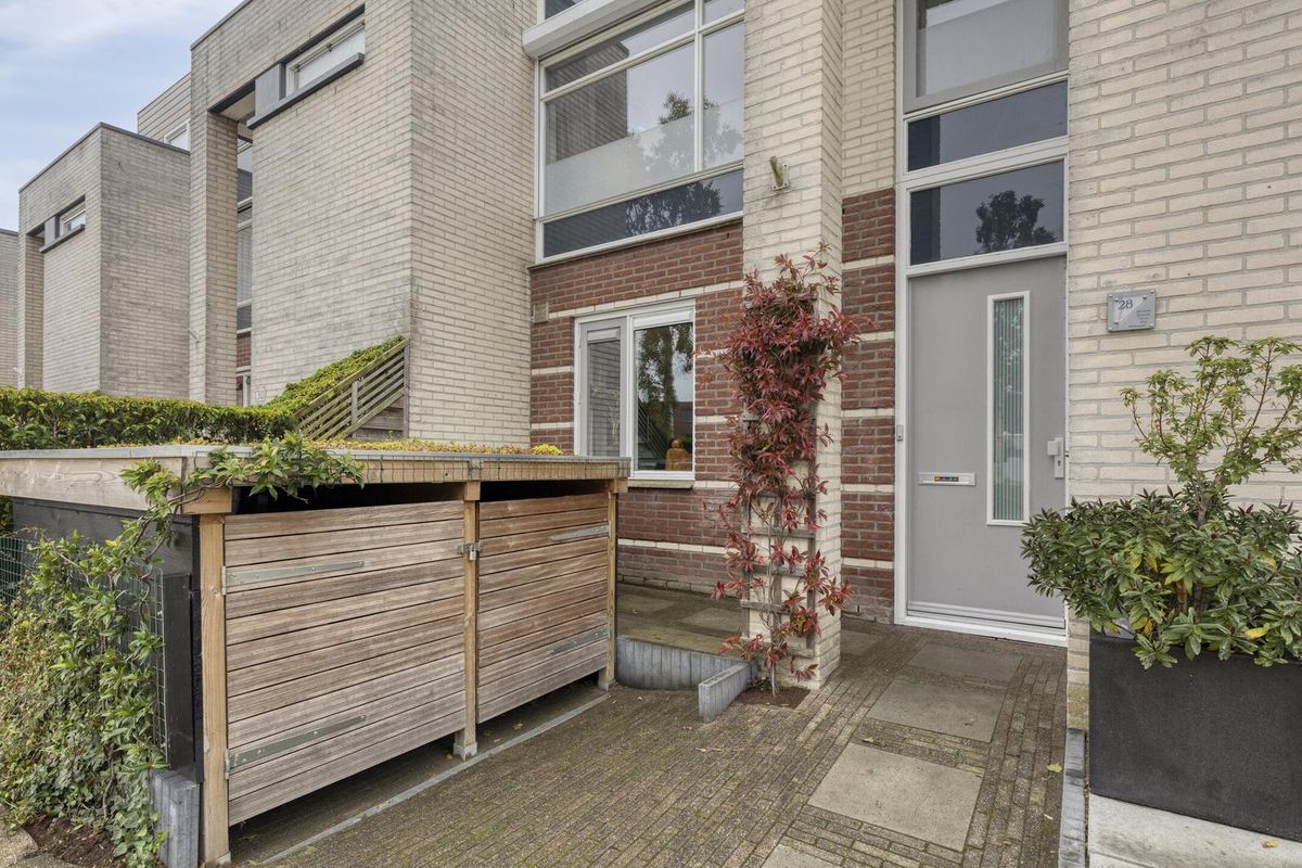 Voortuin: De voortuin is efficiënt ingericht met ruimte voor de containers en een nieuwe fietsenstalling (2024).