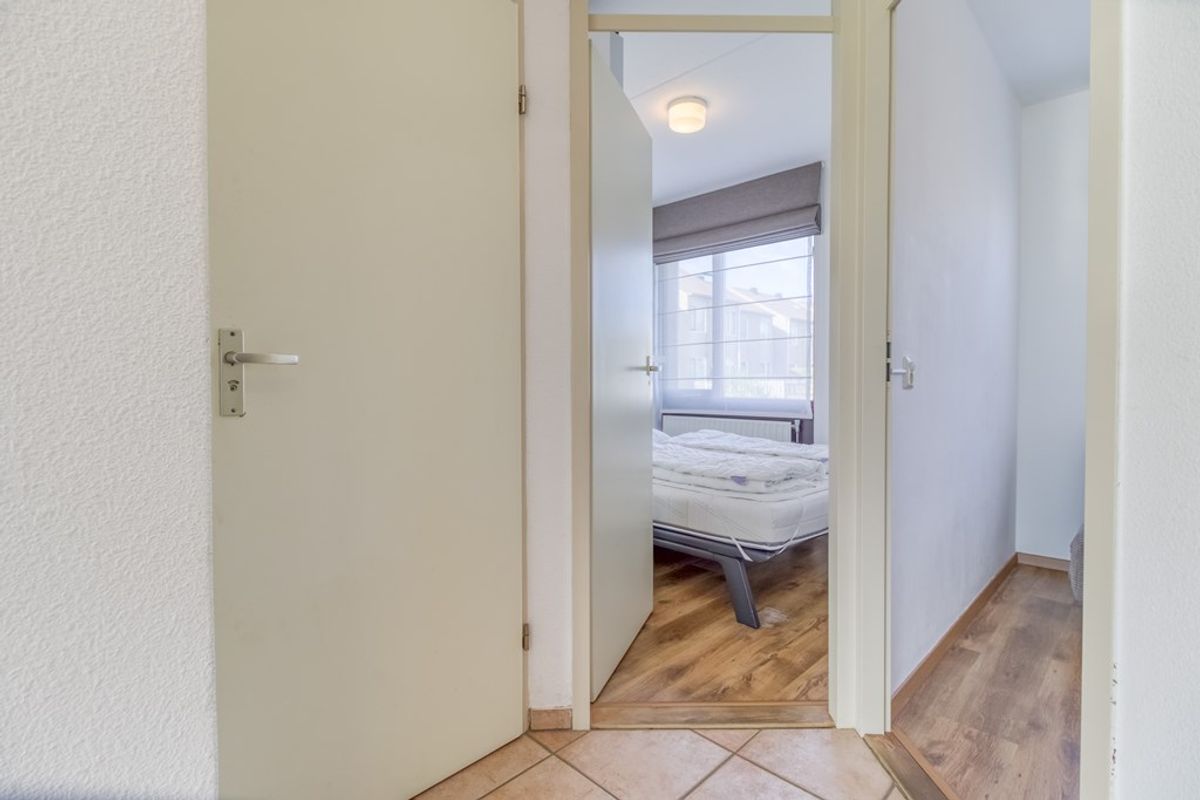 U komt binnen in de hal met meterkast en ruimte voor de garderobe. Vanuit de hal is er toegang tot alle ruimtes in het appartement. De woonkamer heeft een zit- en eethoek met een schuifdeur naar het terras. Wanneer u de schuifdeur helemaal open zet betrekt u het terras en de buitenruimte optimaal bij de woonruimte. De keuken bevindt zich in de woonkamer en is voorzien van; 4-pits gaskookplaat, afzuigkap, spoelbak en koelkast met vriesvak. Er zijn twee slaapkamers die beide uitkijken op de voortuin. De badkamer is voorzien van douche, wastafel en toilet,