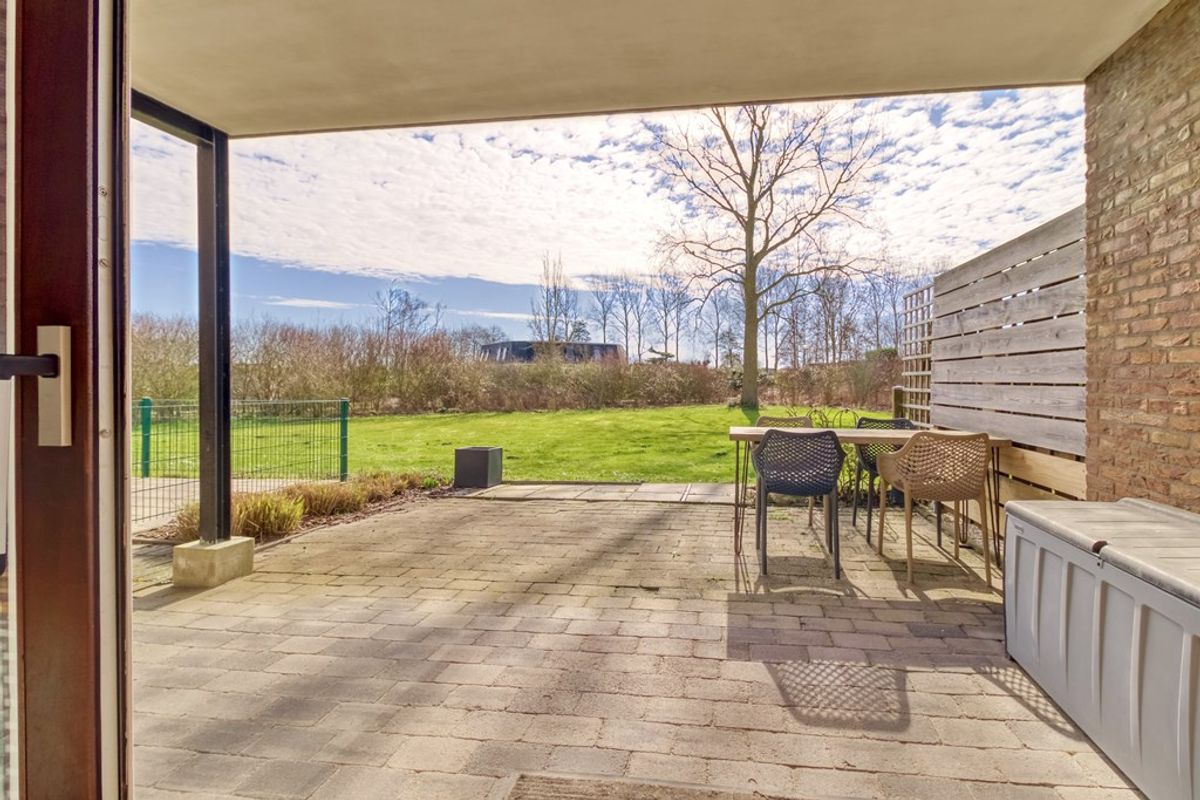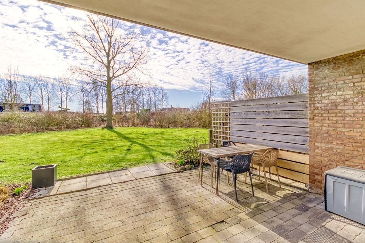Via de schuifdeur in de woonkamer komt u op ruime gedeeltelijk overdekte terras met zicht op veel groen. De achtertuin is gelegen op het zuiden waar het heerlijk genieten is van het zonnetje. Bovendien is er voldoende privacy.