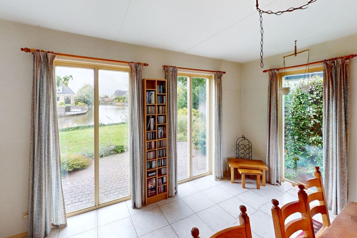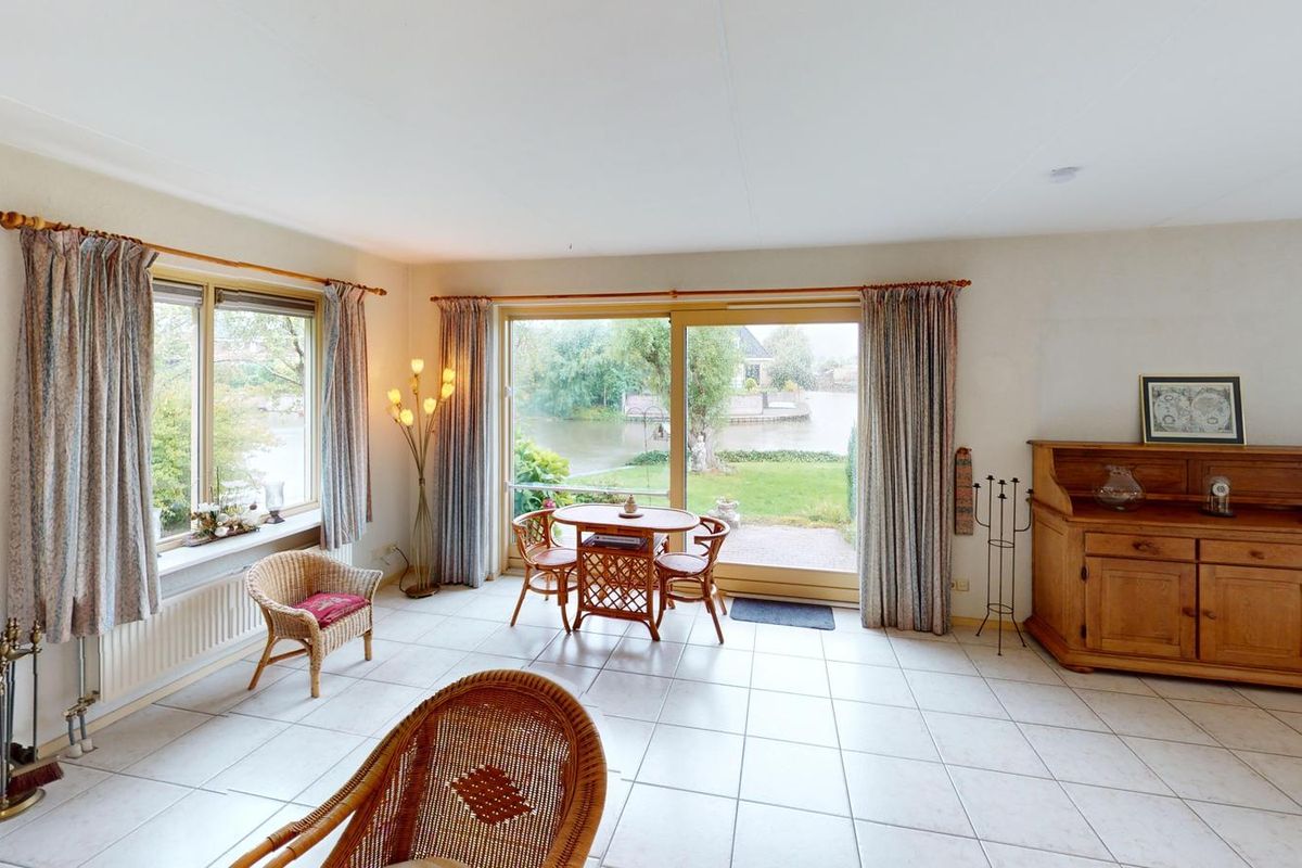 Vanuit de hal stapt u de centrale plek van de woning binnen! Deze riante woonkamer is een lust voor het oog! U zult verrast zijn door de lichtinval in deze brede woonkamer! Door de vele ramen heeft u enorm veel licht en zon in de woonkamer! Een heerlijke plek om te vertoeven. De schuifpui vormt een fraaie overgang naar de achtergelegen tuin. U kunt in deze woonkamer prima een heerlijk loungebank plaatsen met fraai zicht op het water! De gashaard draagt, samen met de plavuizenvloer met comfortabele vloerverwarming, bij aan de fijne sfeer die u hier kunt creëren! Komt u maar eens aan de eettafel in de woonkamer plaatsnemen en geniet van het uitzicht aan de achterzijde van de woning!
